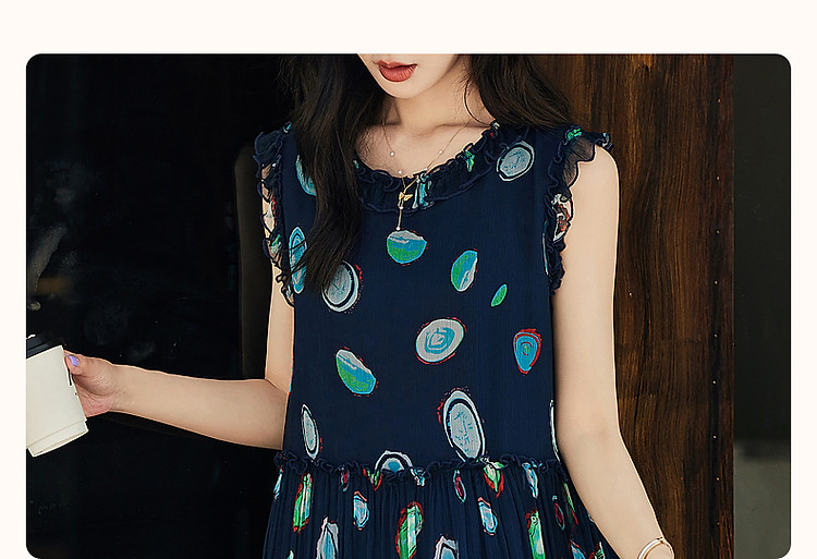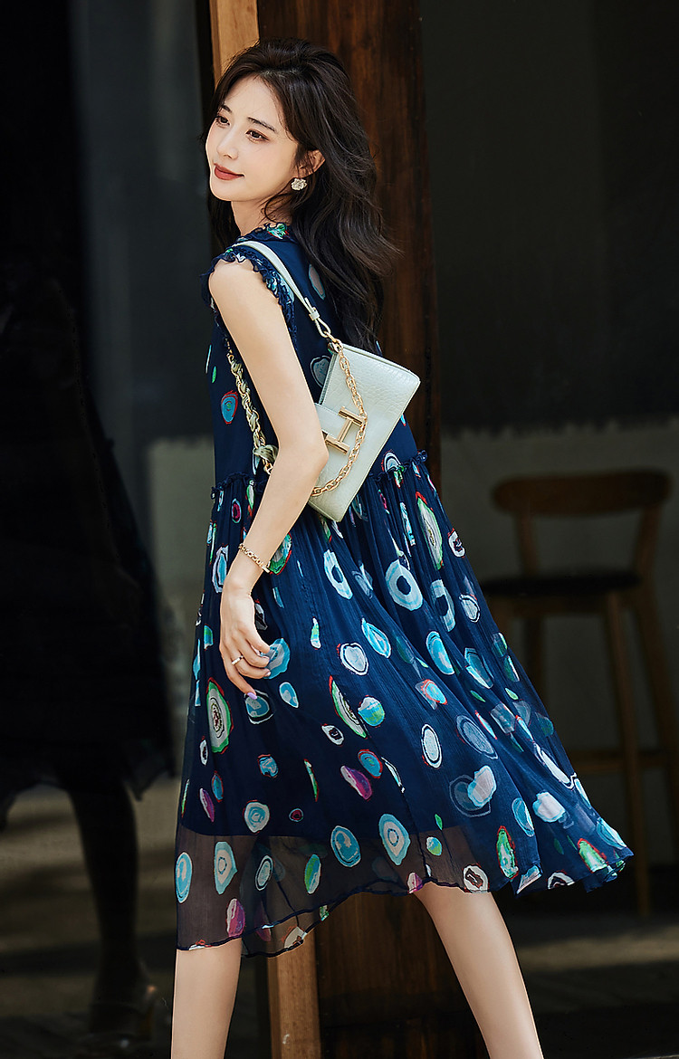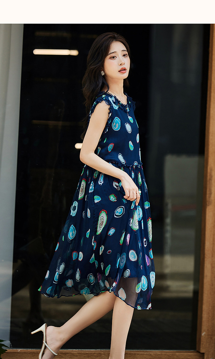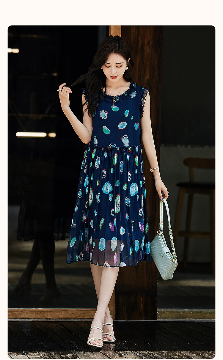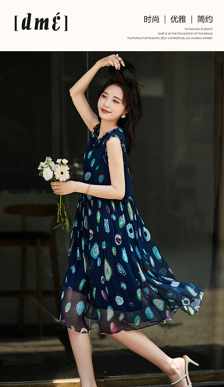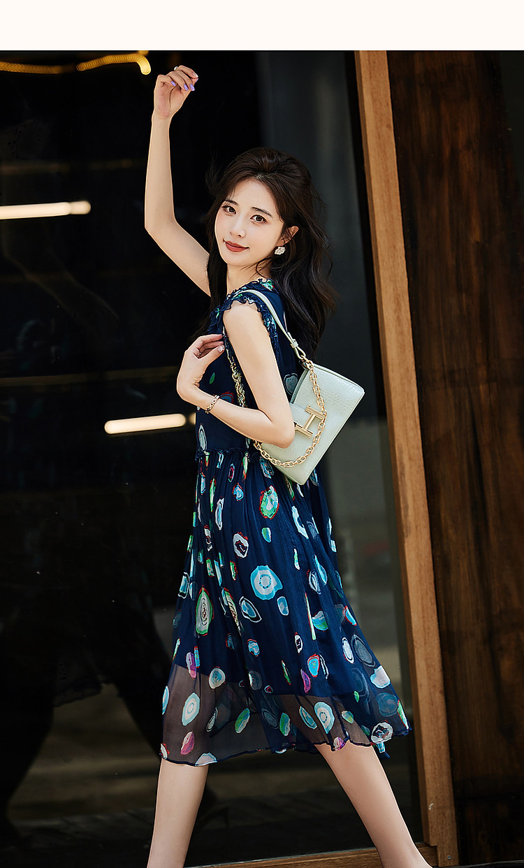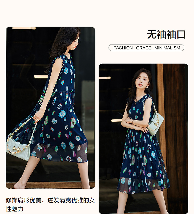 商品名称:【香雪海】春呼吸感桑蚕丝真丝娃娃裙印花无袖背心连衣裙 624193