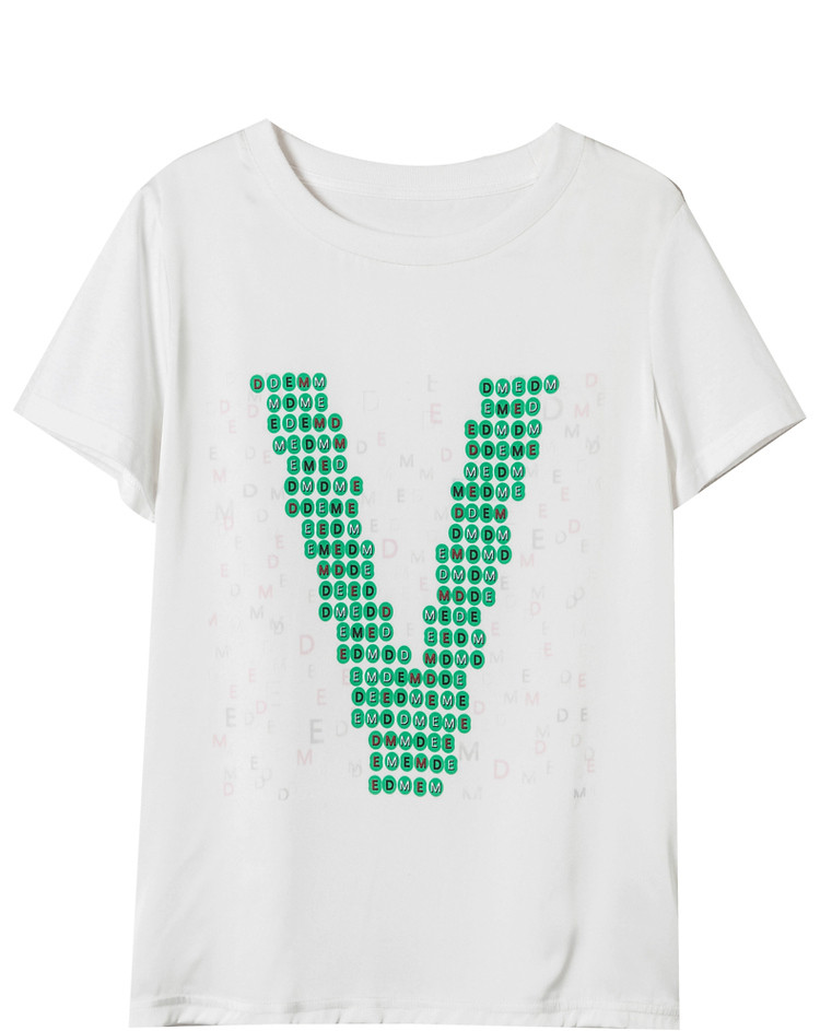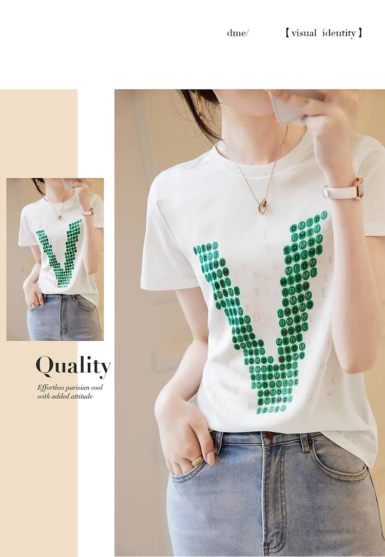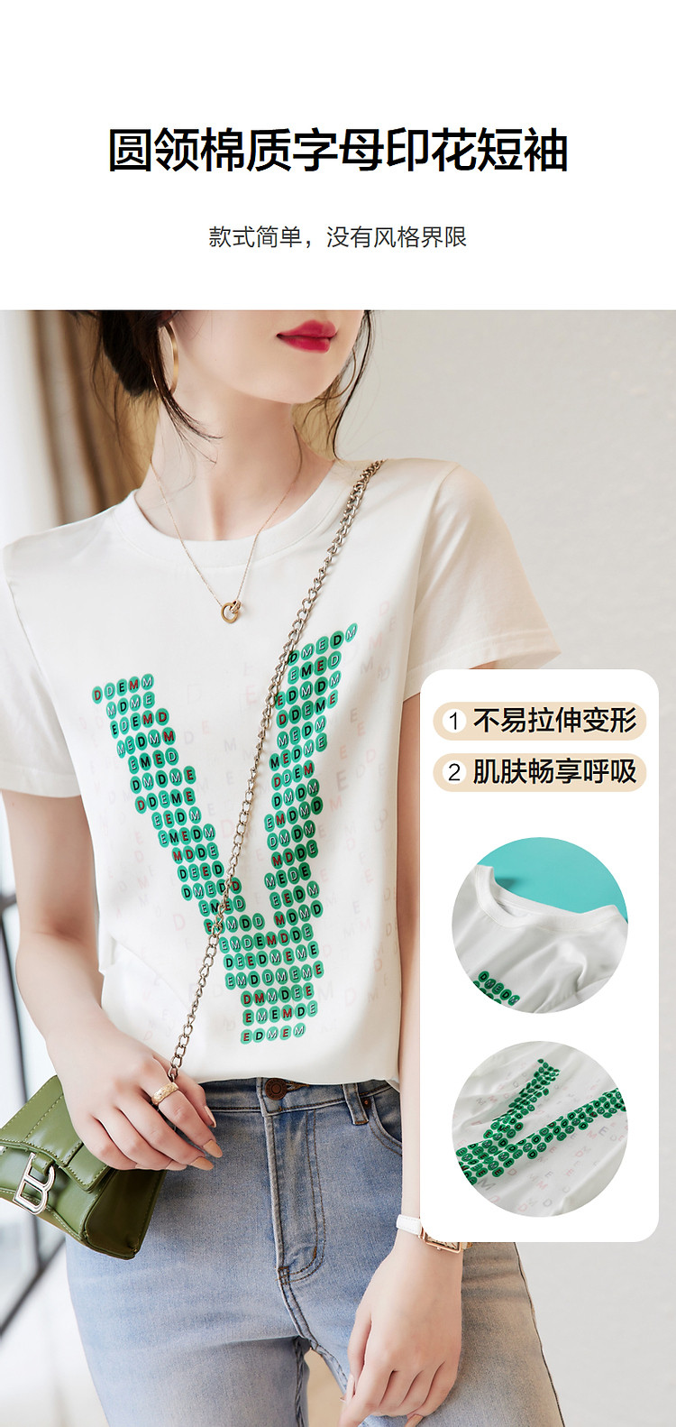 商品名称:【针织绵柔t恤】夏季款圆领女式t恤字母印花拼接短袖t恤女 771649