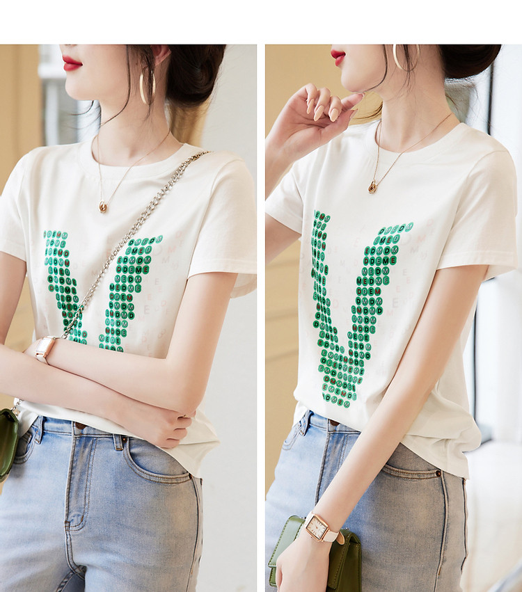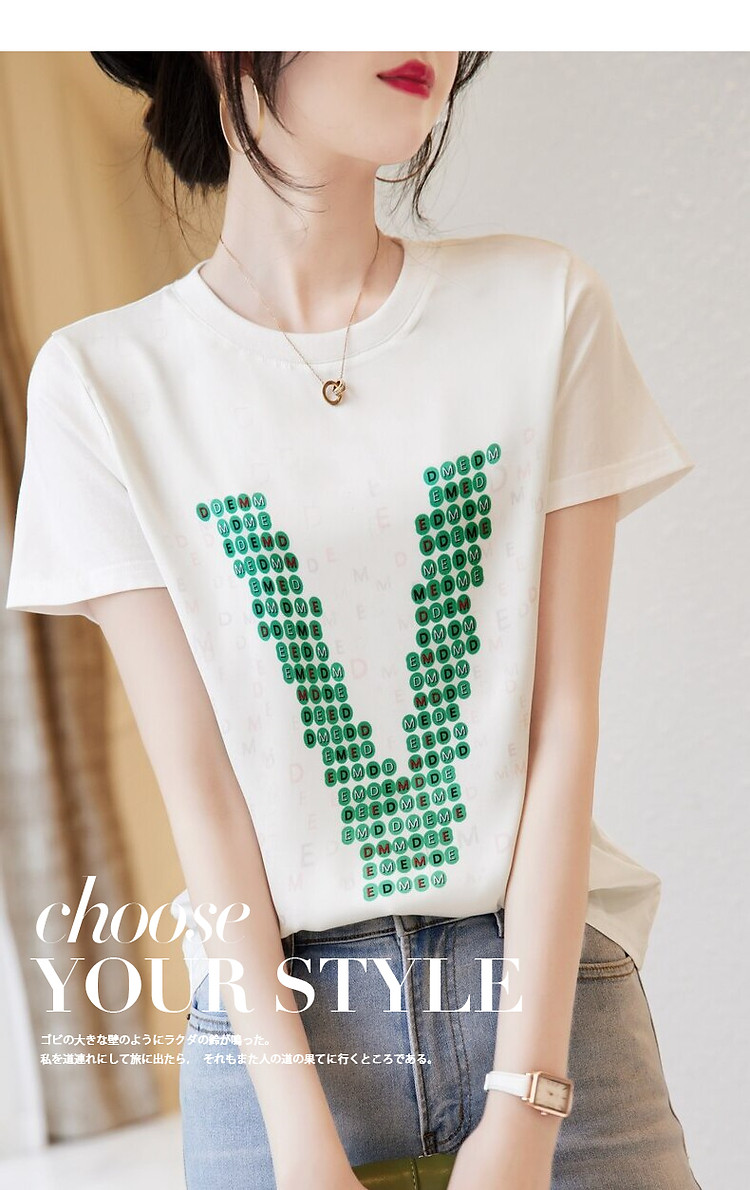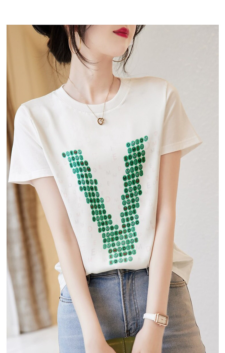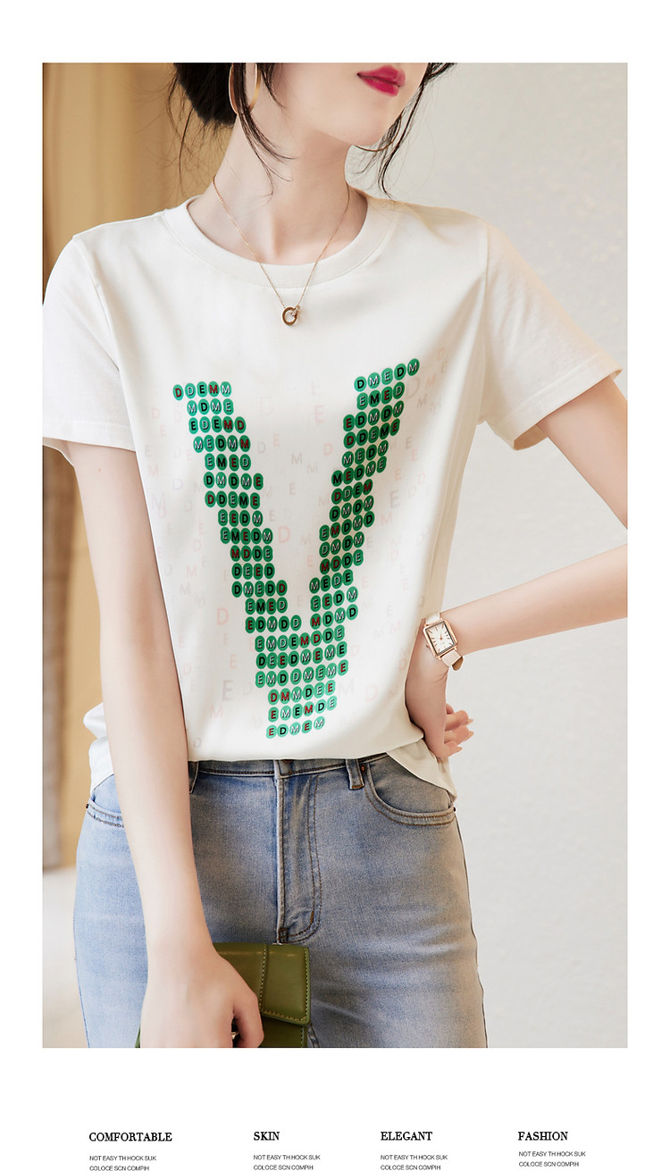 【针织绵柔t恤】夏季款圆领女式t恤字母印花拼接短袖t恤女 771649