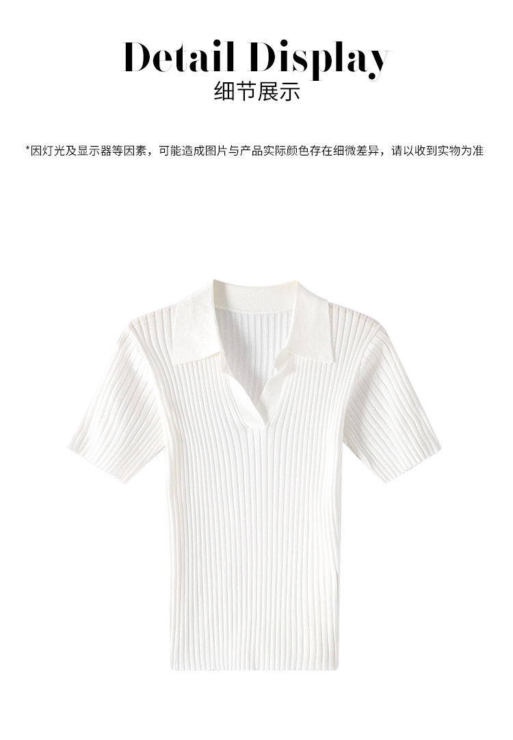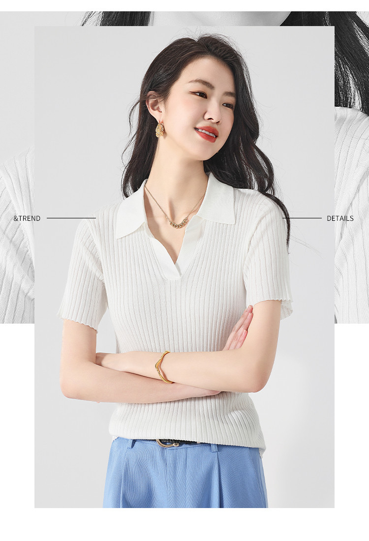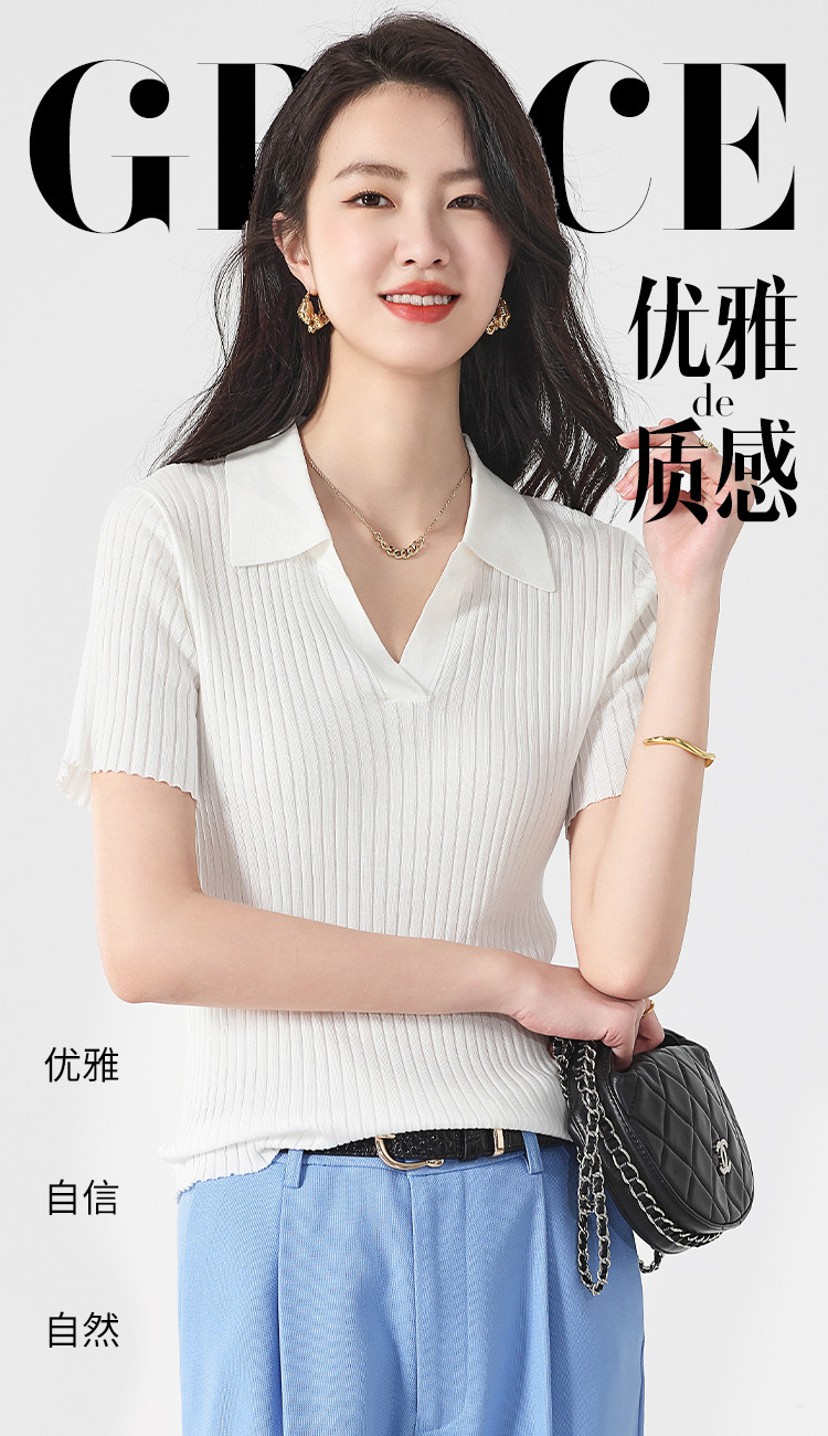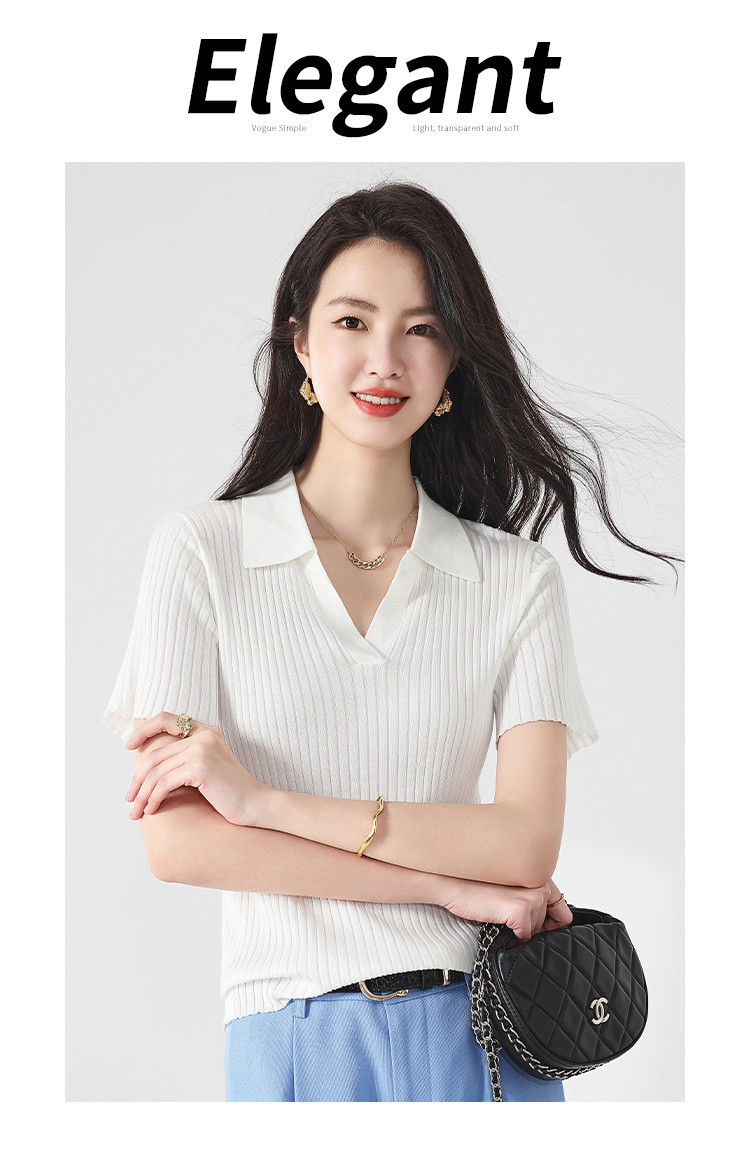 商品名称:纯色百搭翻领含桑蚕丝针织打底衫短袖T恤轻薄透气 366995