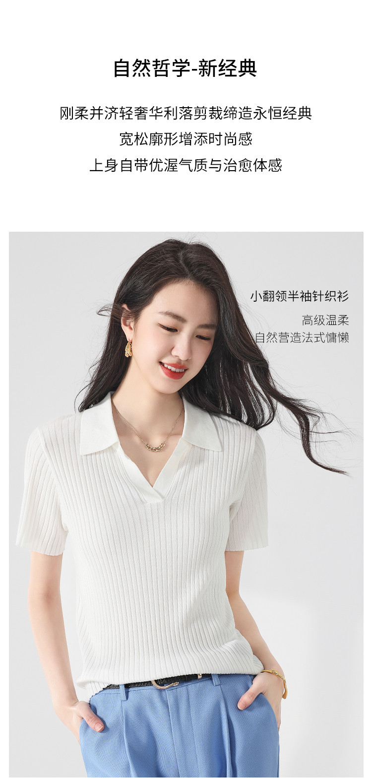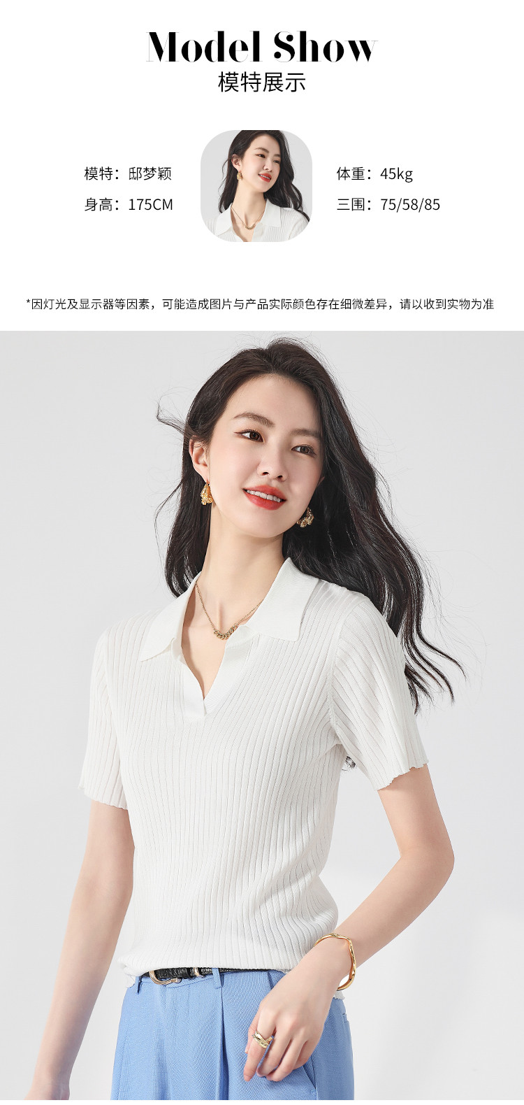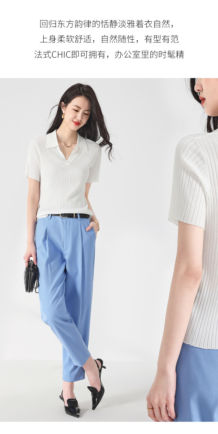 商品名称:纯色百搭翻领含桑蚕丝针织打底衫短袖T恤轻薄透气 366995