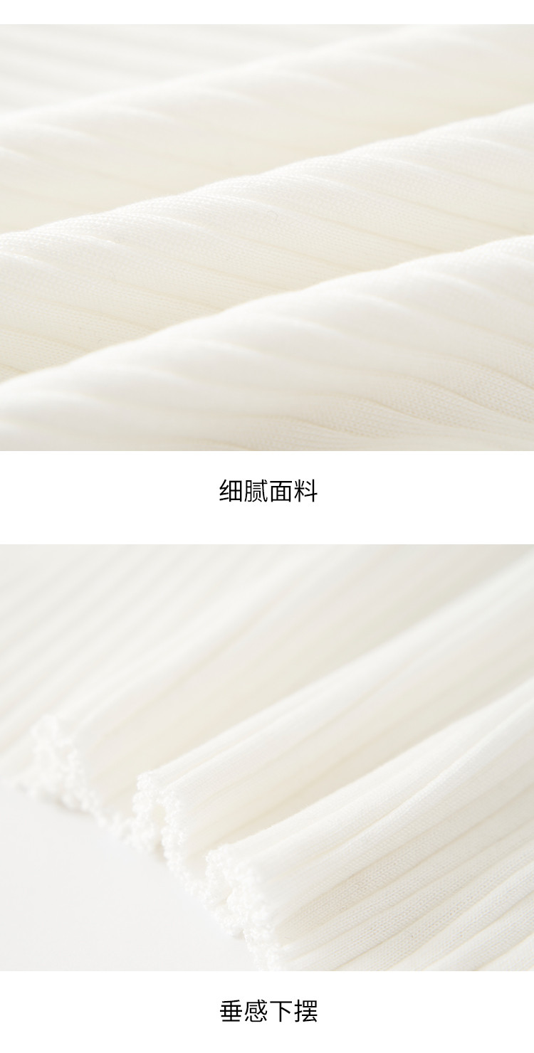 米子旗春秋季款圆领女士T恤纯色下摆开叉长袖上衣女 701722