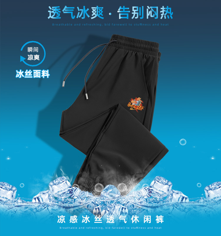 商品名称:【冰感纤维】夏季男士运动裤薄款凉感国潮印花休闲束脚裤空调长裤 682131