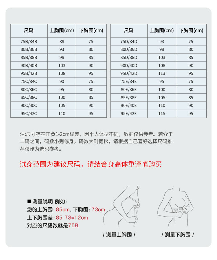 | 尺码 | 下胸围(cm) | 上胸围(cm) |