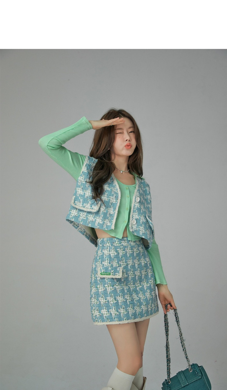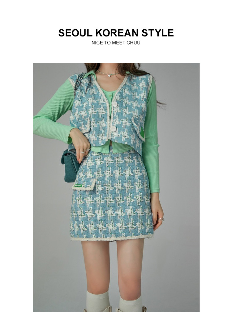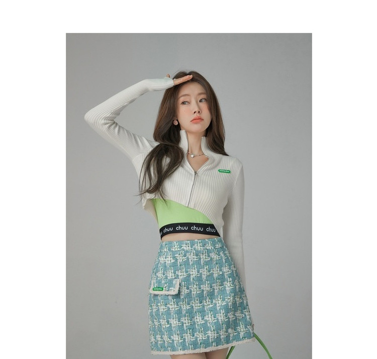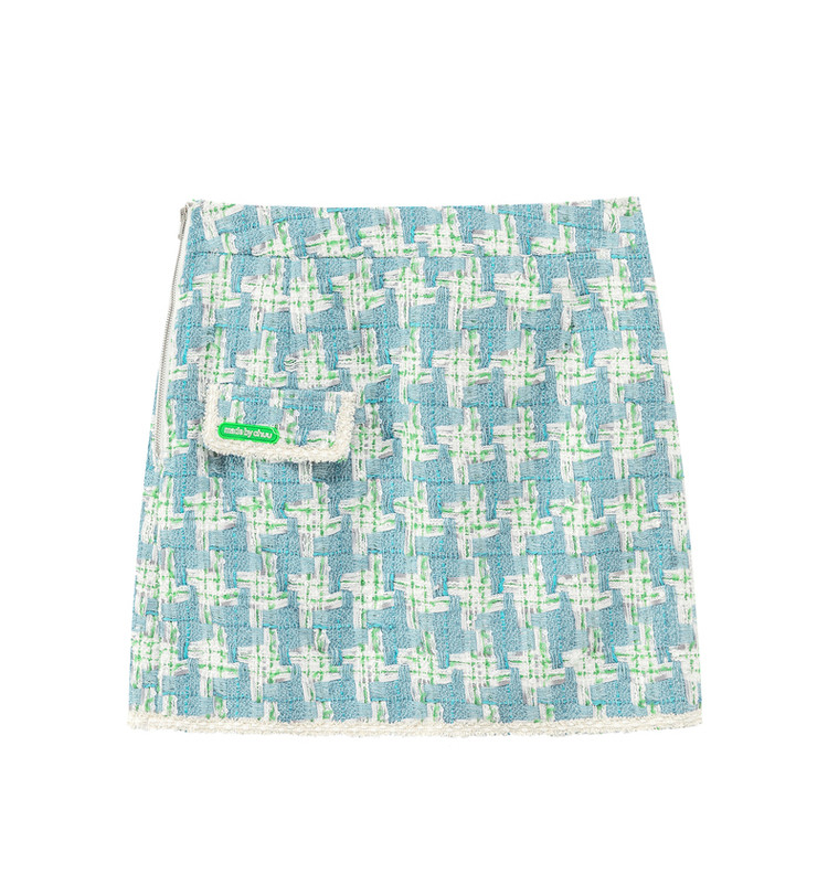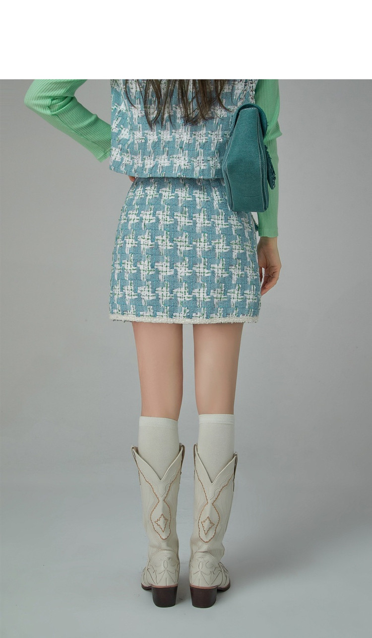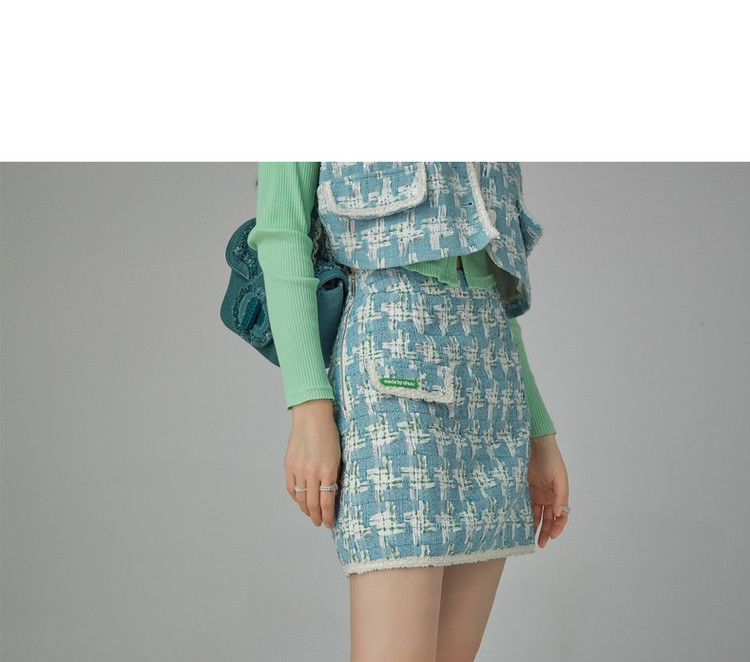 商品名称:高腰撞色织花半身裙女春秋季小香风a字包臀短款裙子 828819