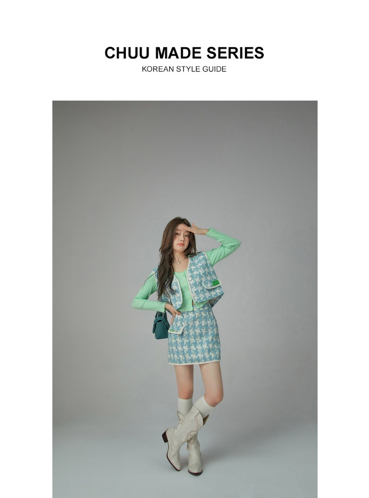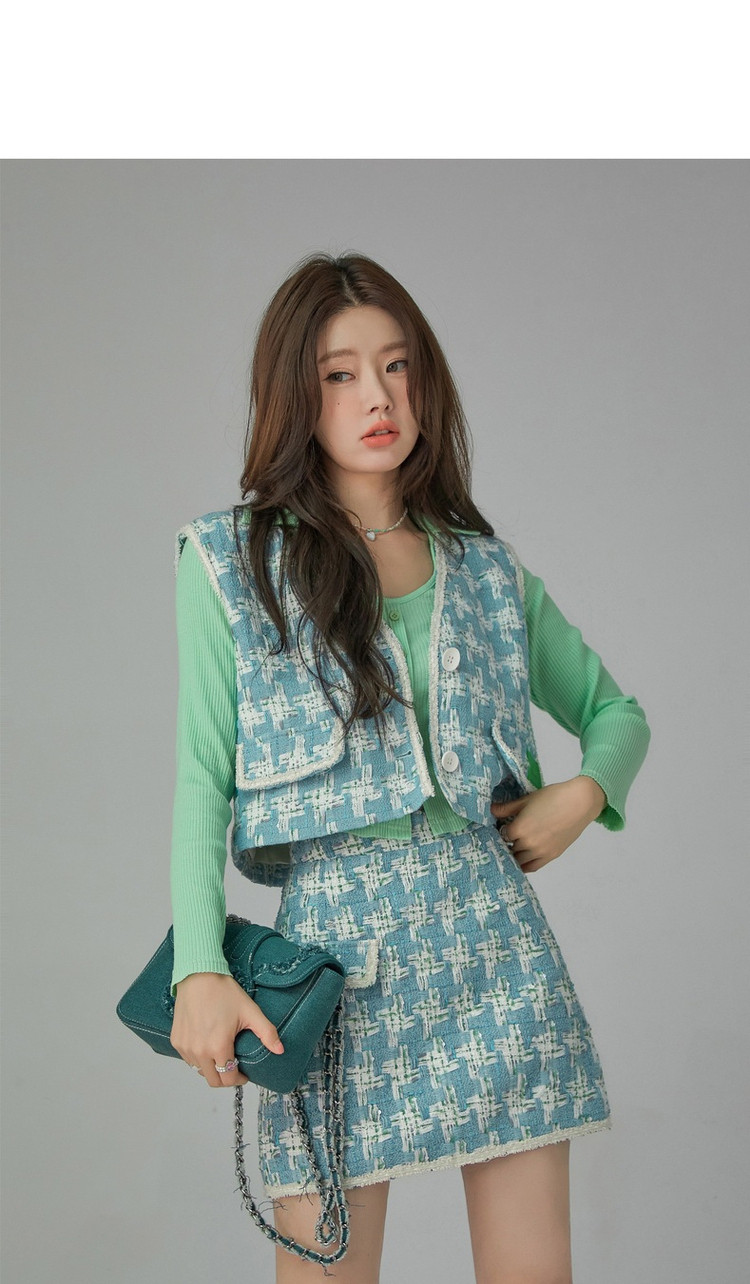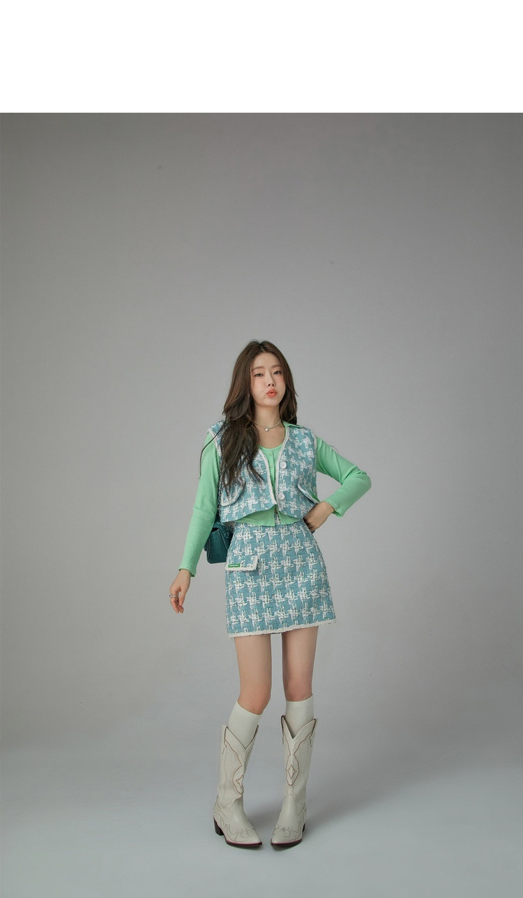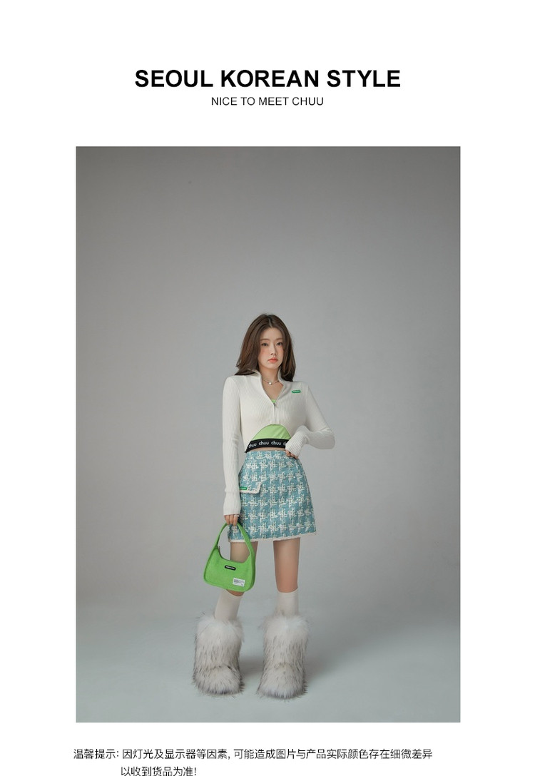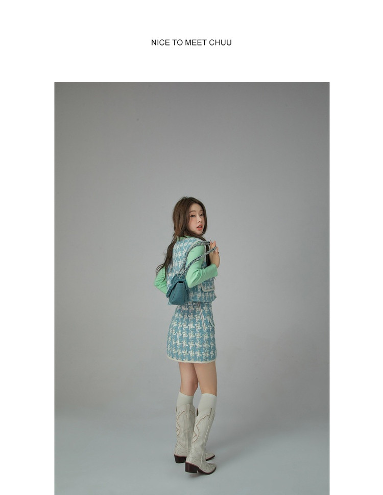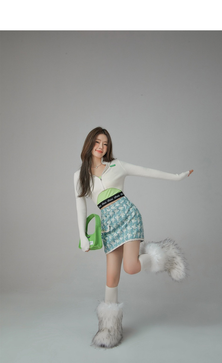 商品名称:高腰撞色织花半身裙女春秋季小香风a字包臀短款裙子 828819