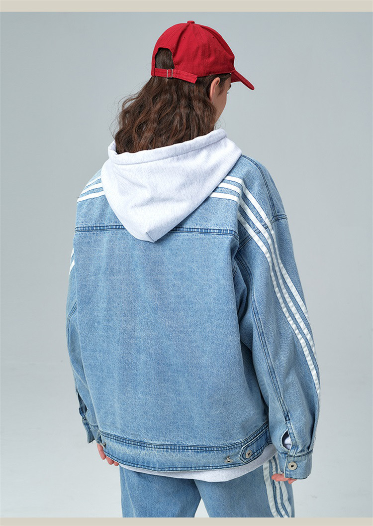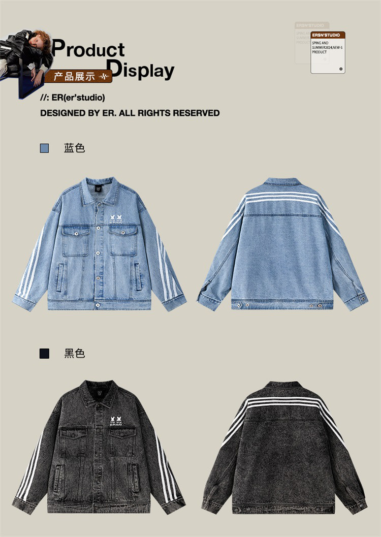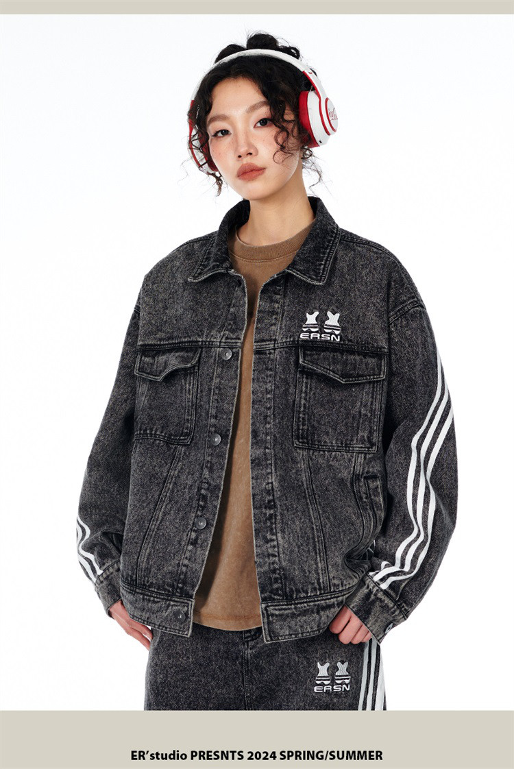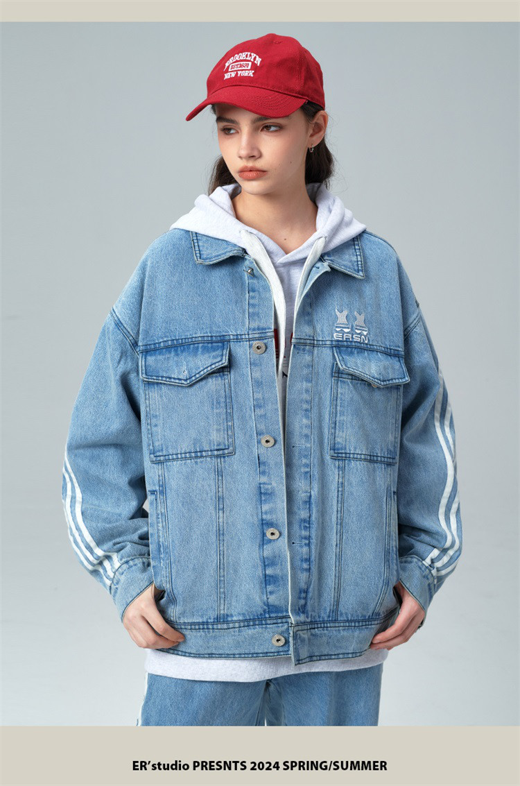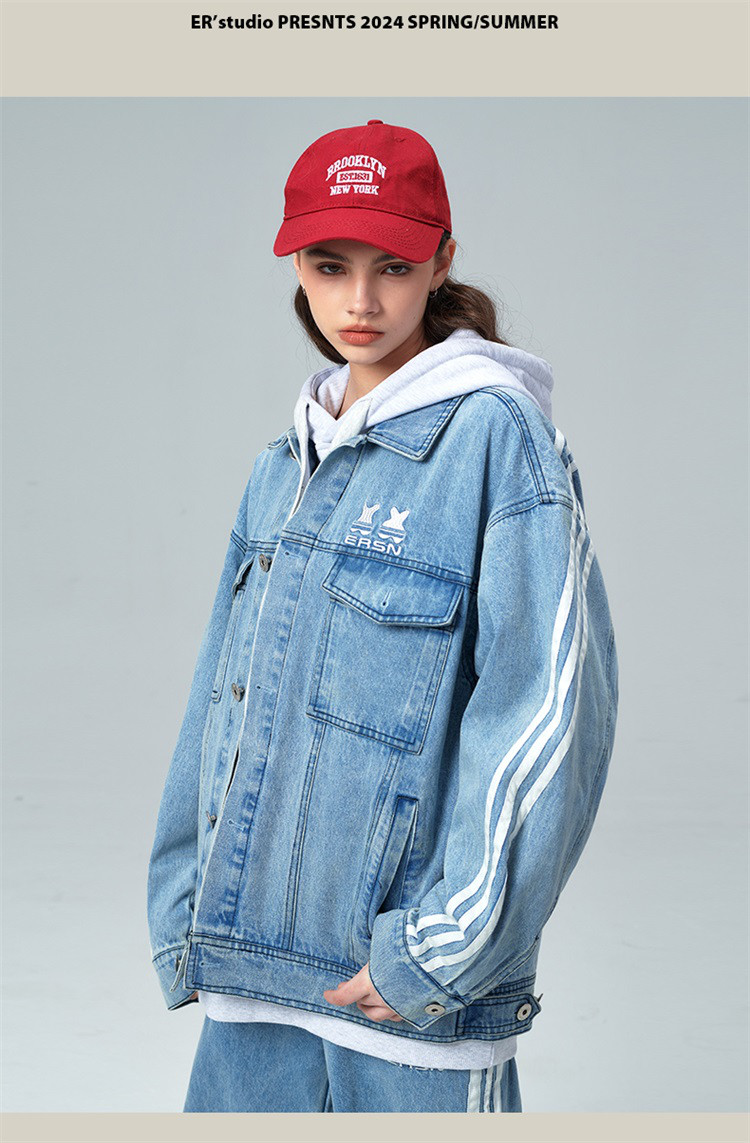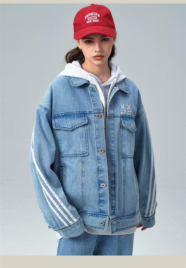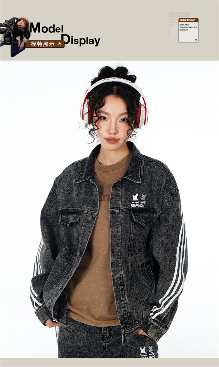 商品名称:笑脸条纹牛仔夹克2024春季水洗做旧工装情侣夹克外套男女同款 643031