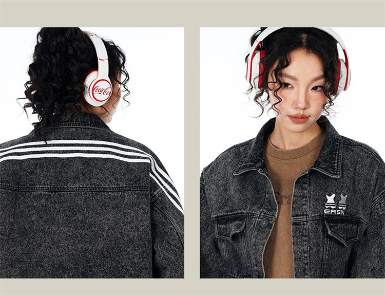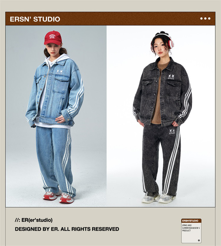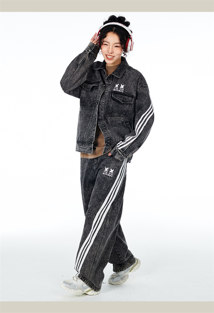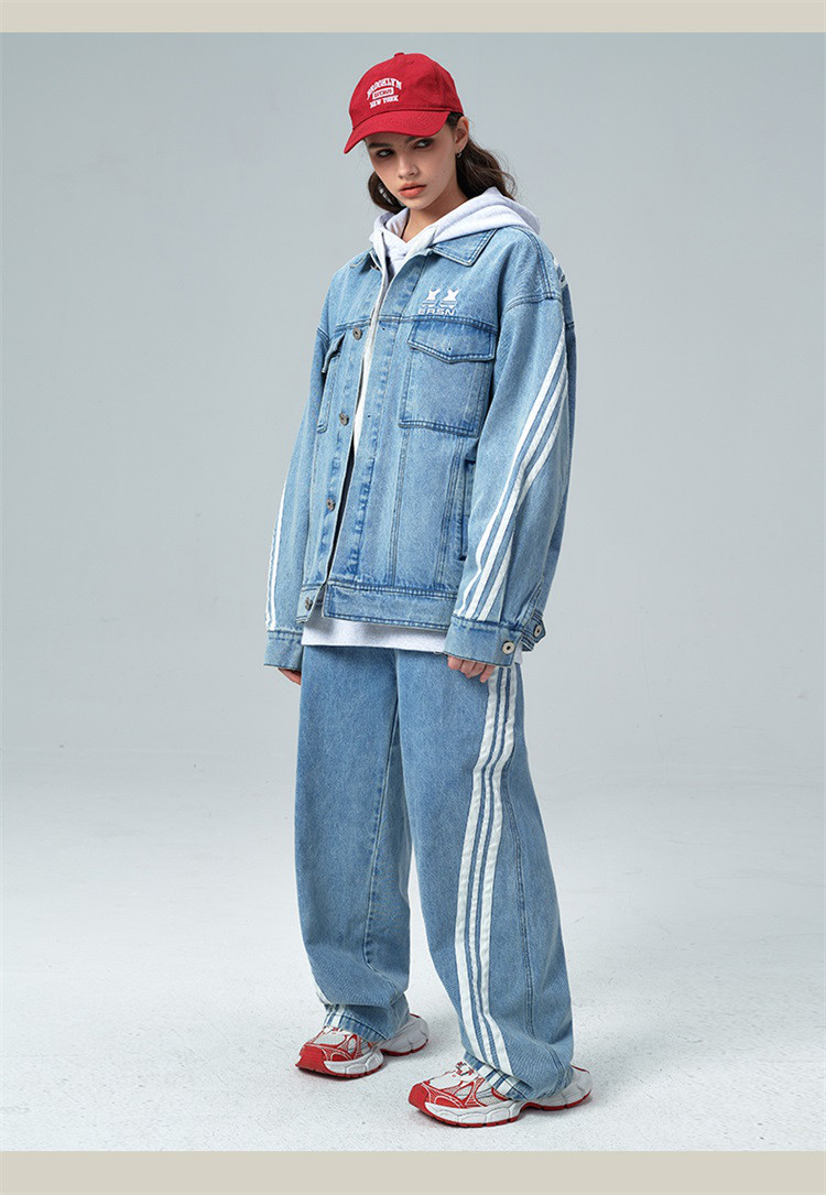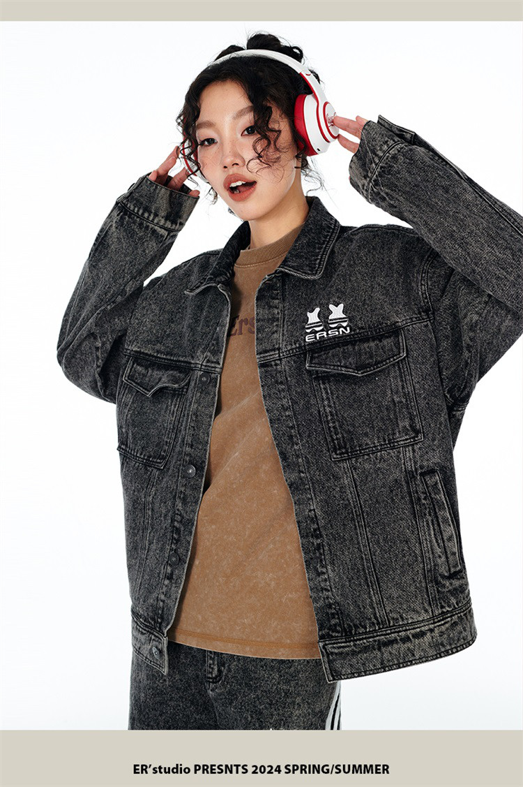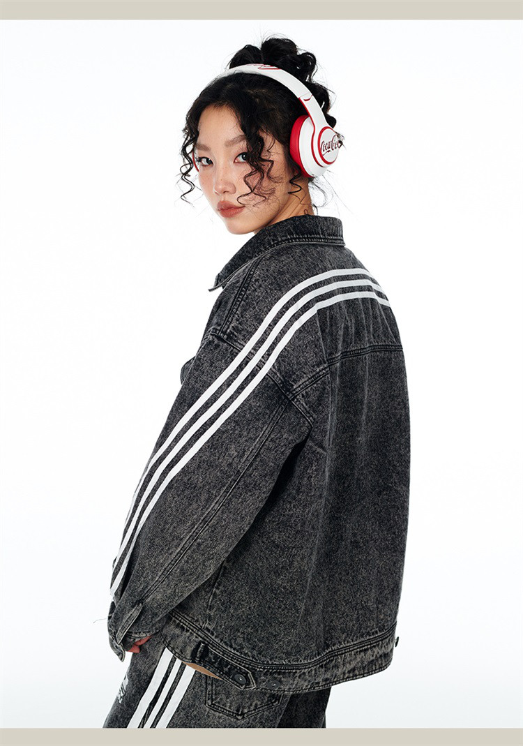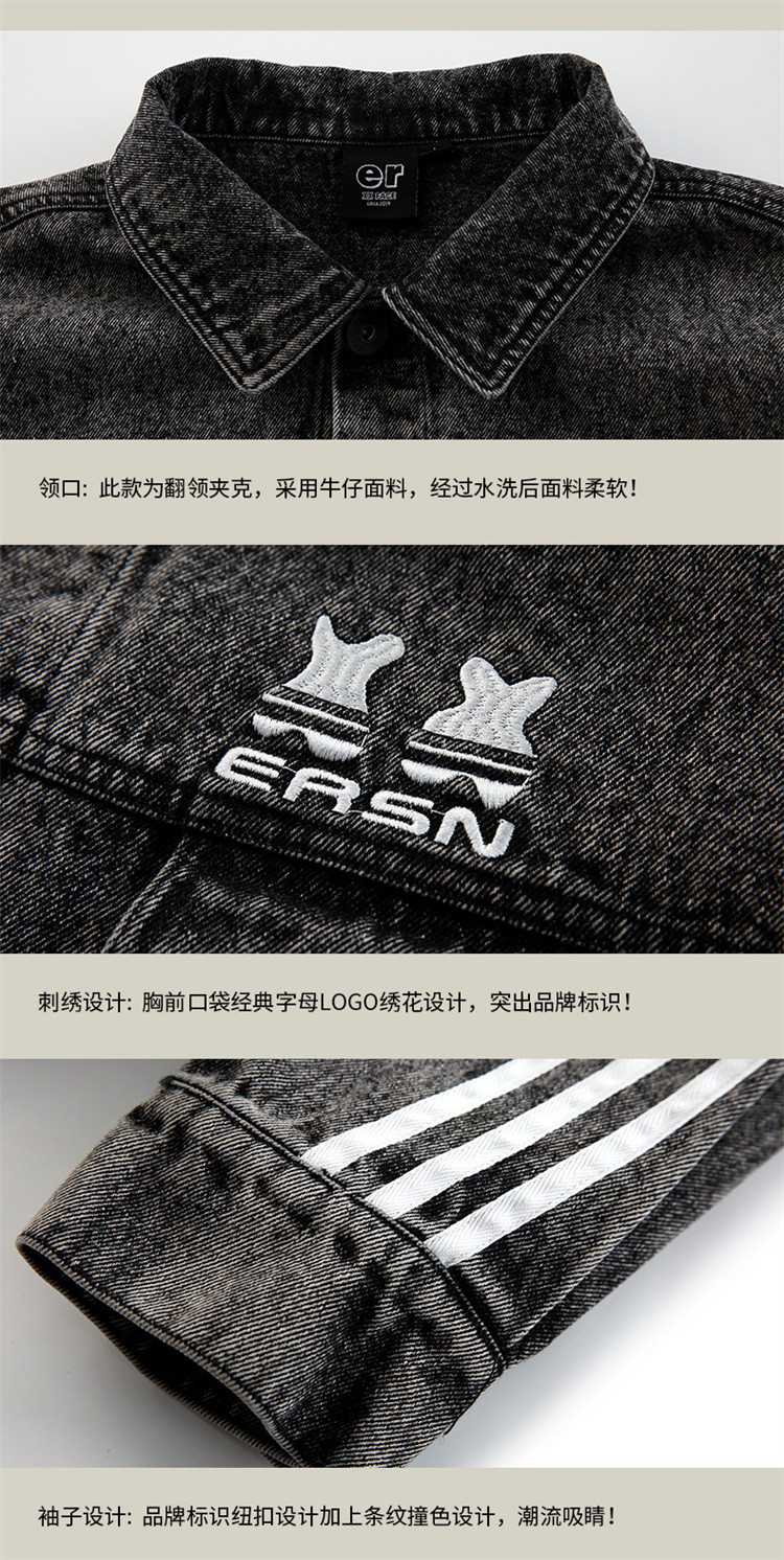 商品名称:笑脸条纹牛仔夹克2024春季水洗做旧工装情侣夹克外套男女同款 643031