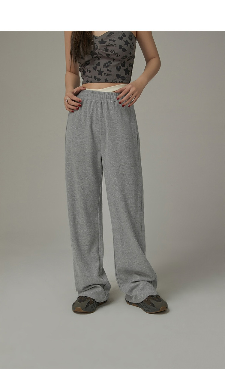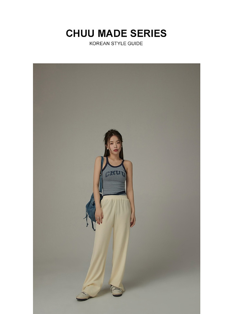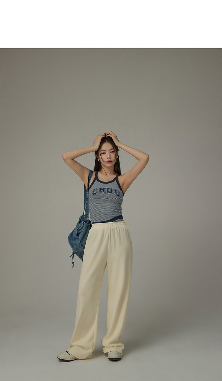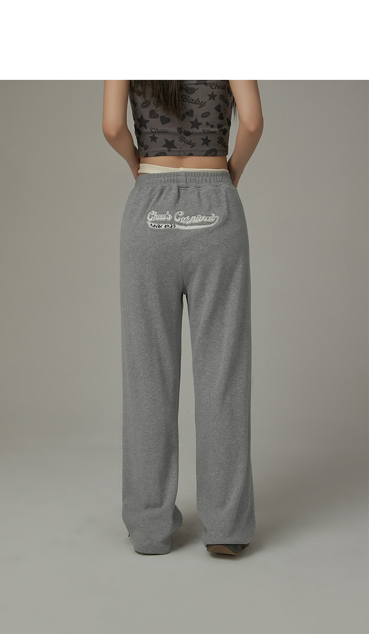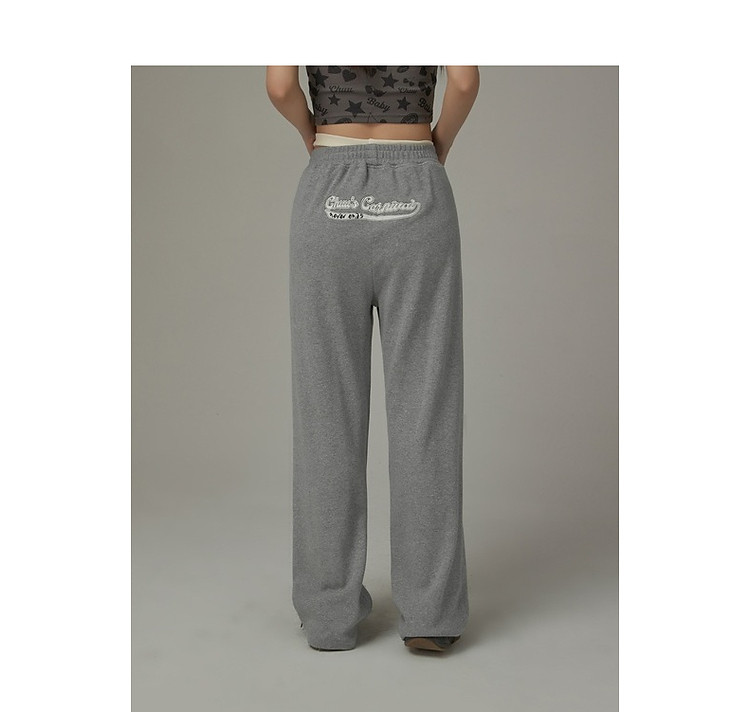 刺绣字母休闲裤女士夏个性直筒裤镂空松紧腰长裤 920595
