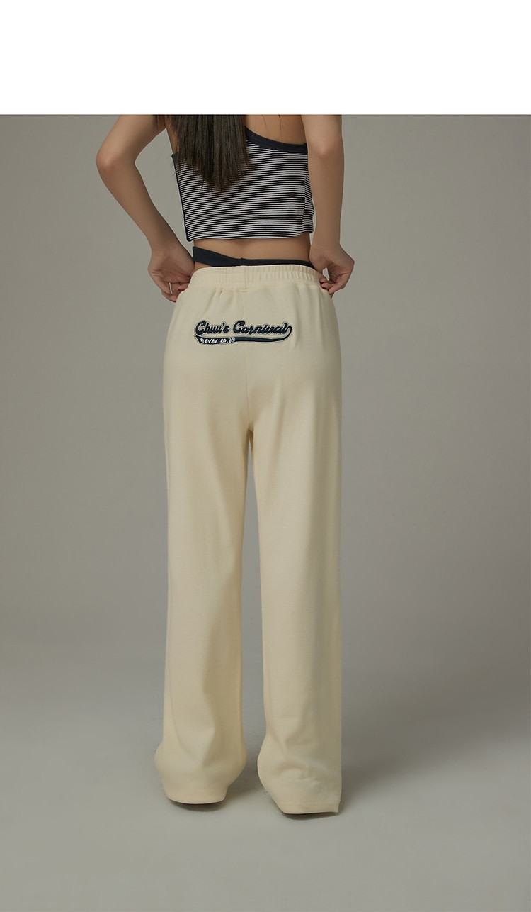 商品名称:刺绣字母休闲裤女士夏个性直筒裤镂空松紧腰长裤 920595