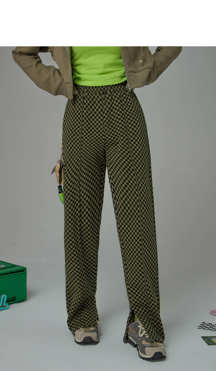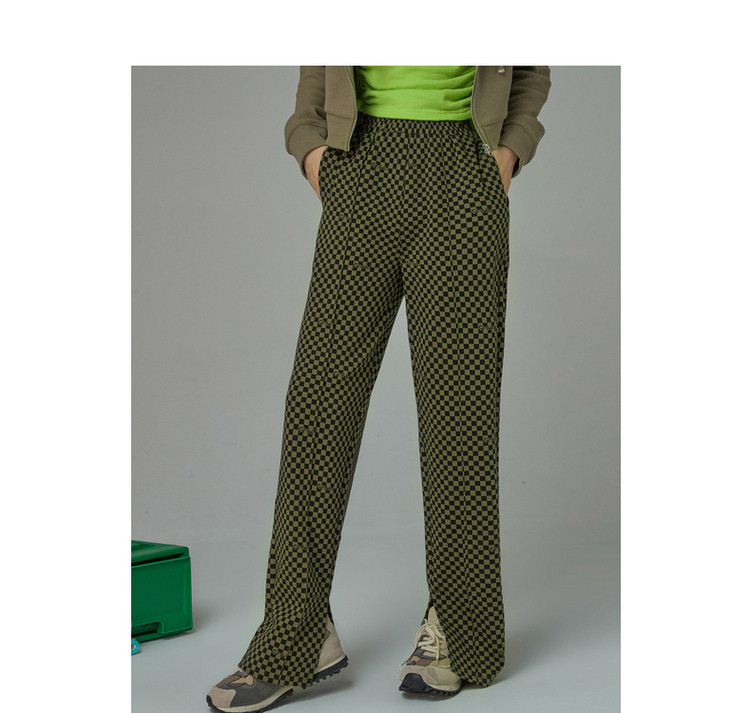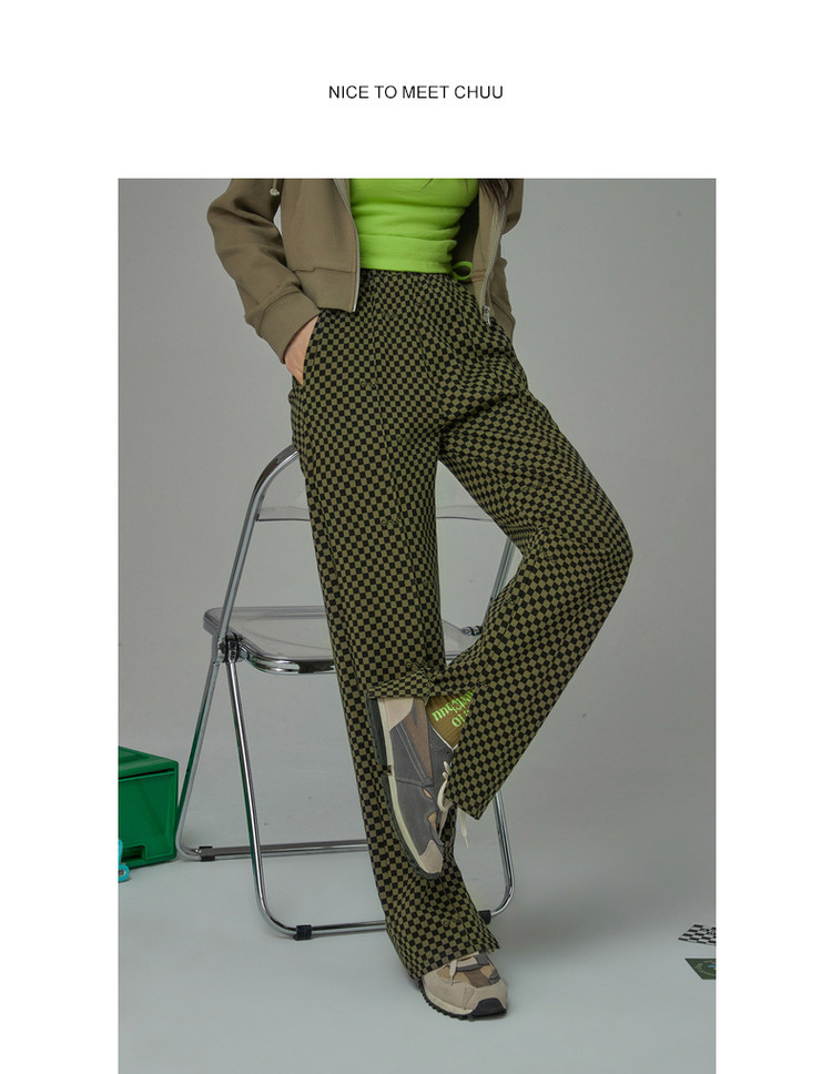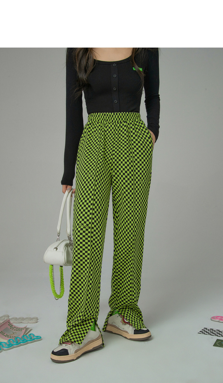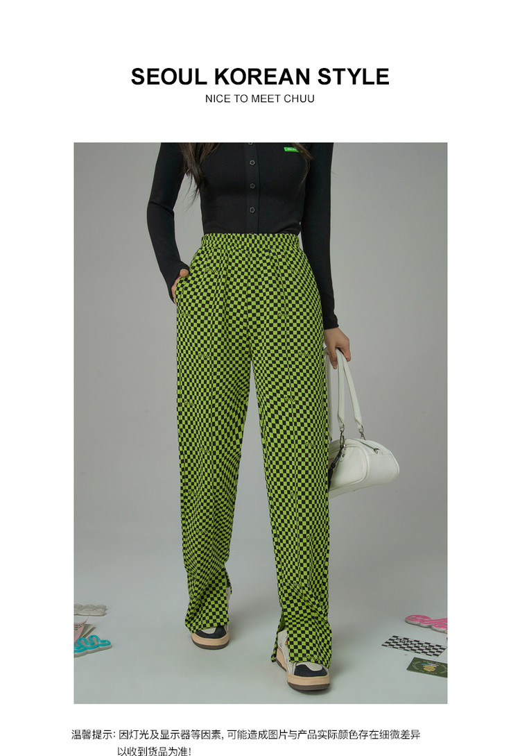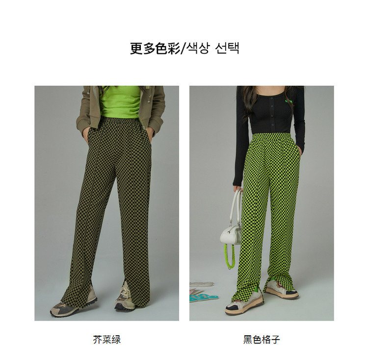 商品名称:复古高腰格纹休闲裤女春秋季韩版开衩显瘦直筒长裤 116627
