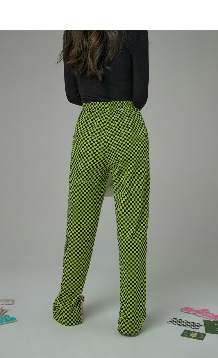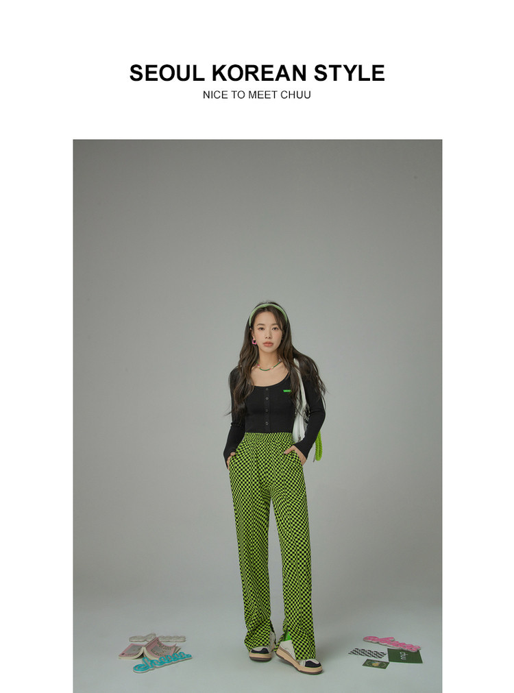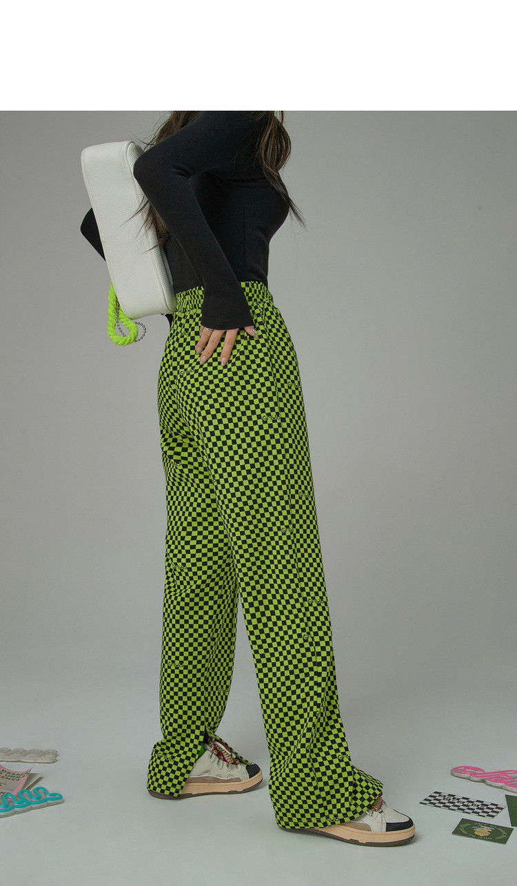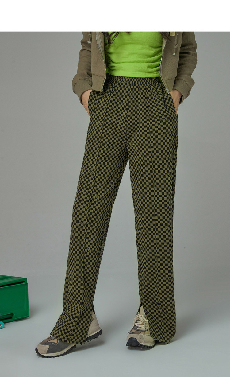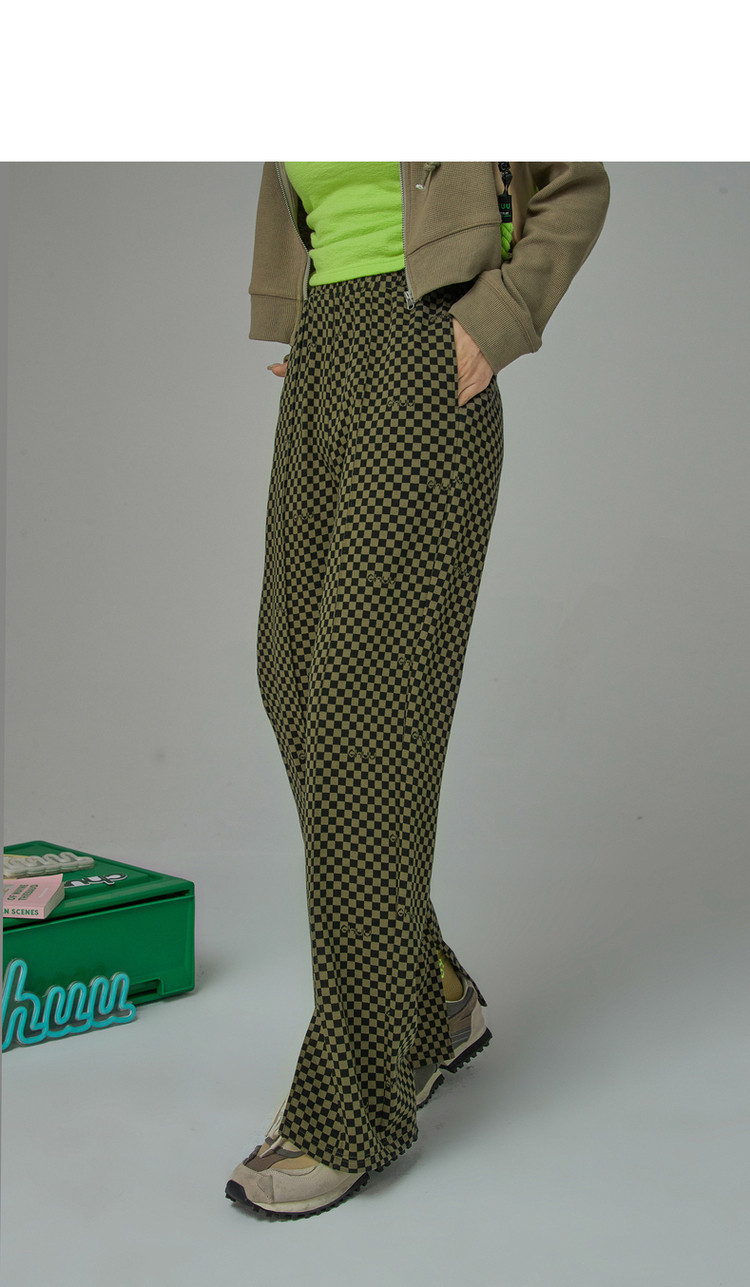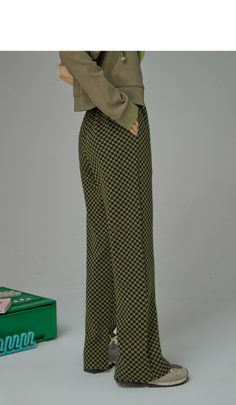 商品名称:复古高腰格纹休闲裤女春秋季韩版开衩显瘦直筒长裤 116627