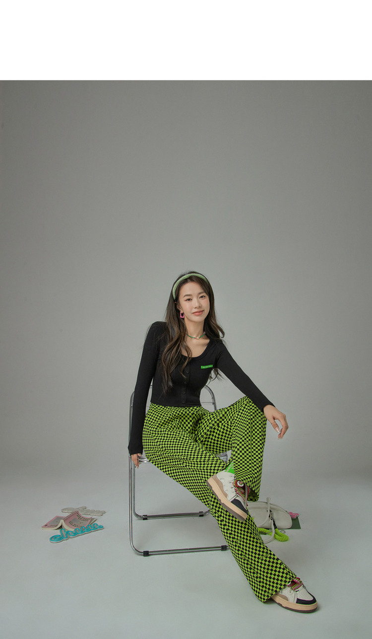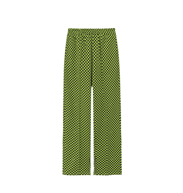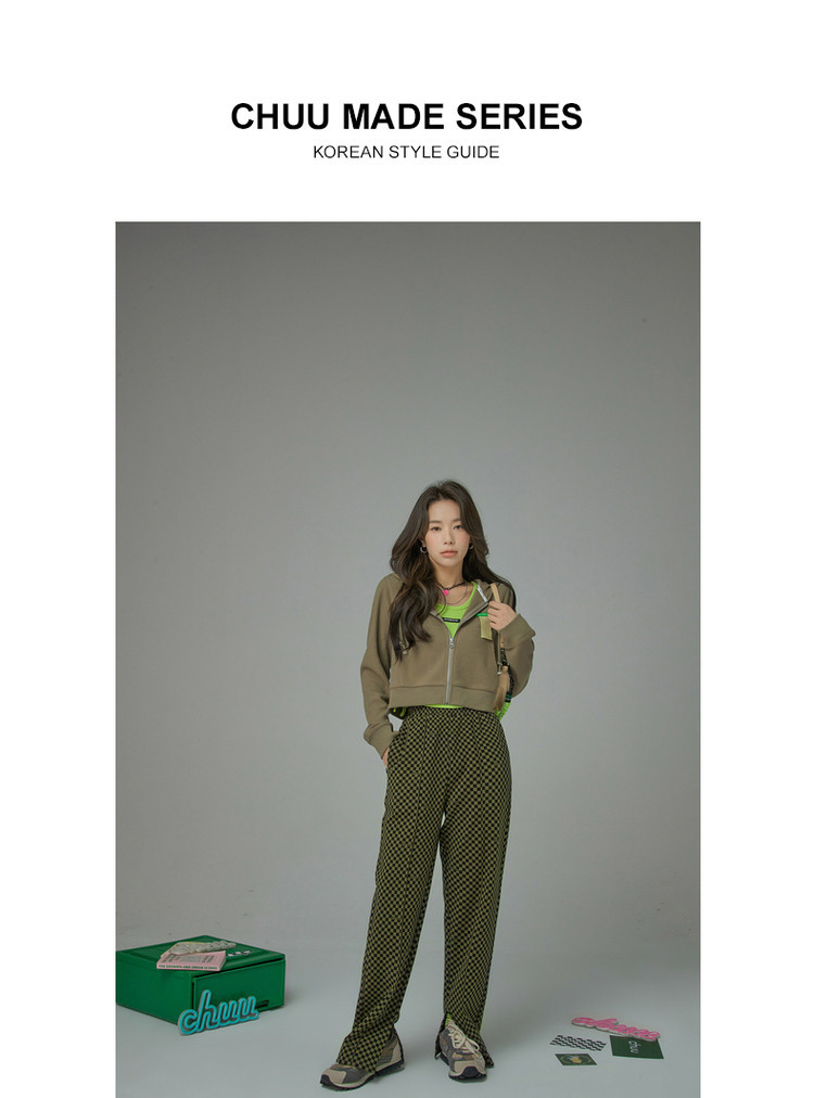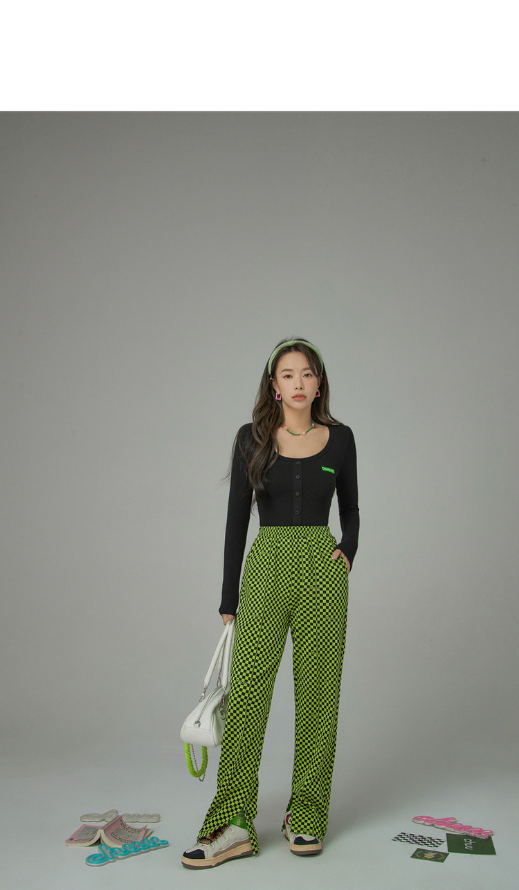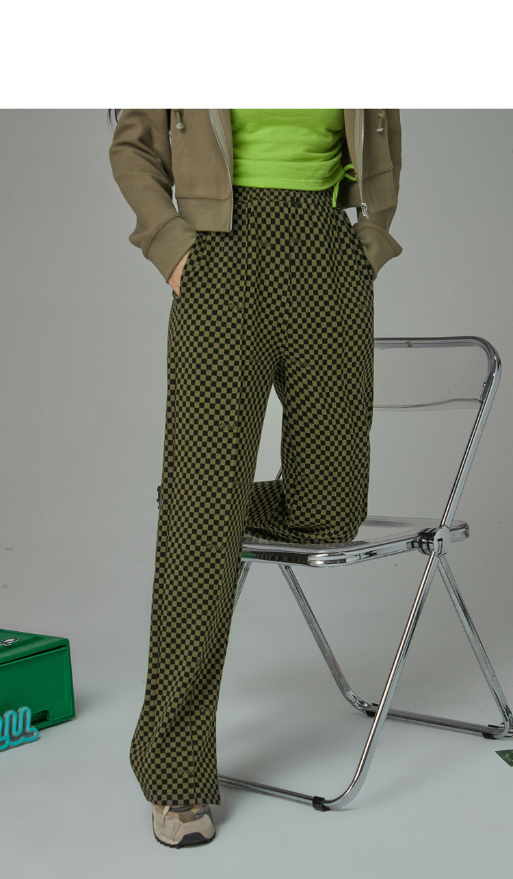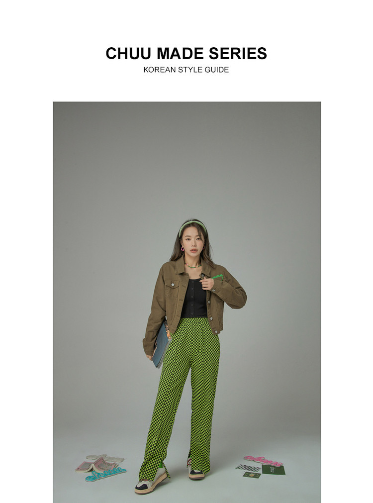 商品名称:复古高腰格纹休闲裤女春秋季韩版开衩显瘦直筒长裤 116627