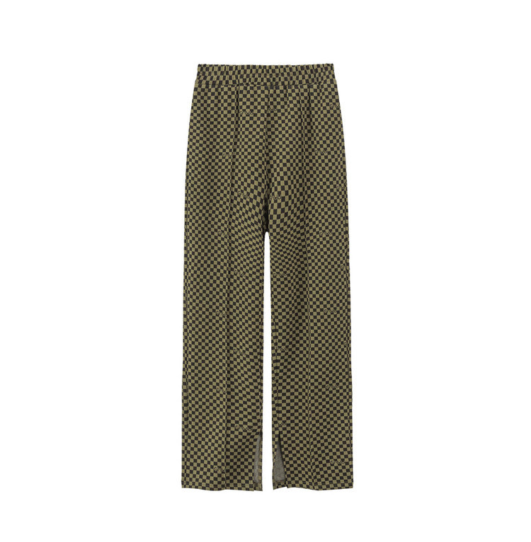 复古高腰格纹休闲裤女春秋季韩版开衩显瘦直筒长裤 116627