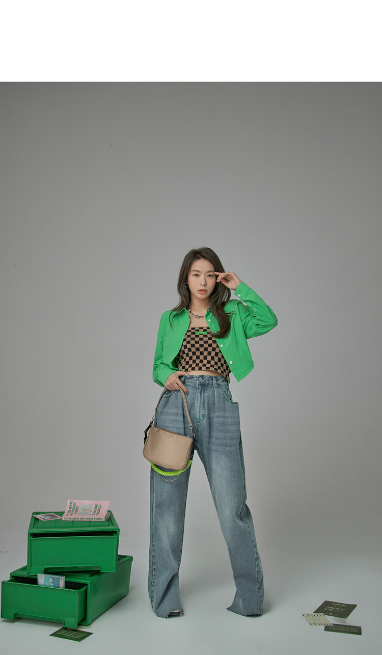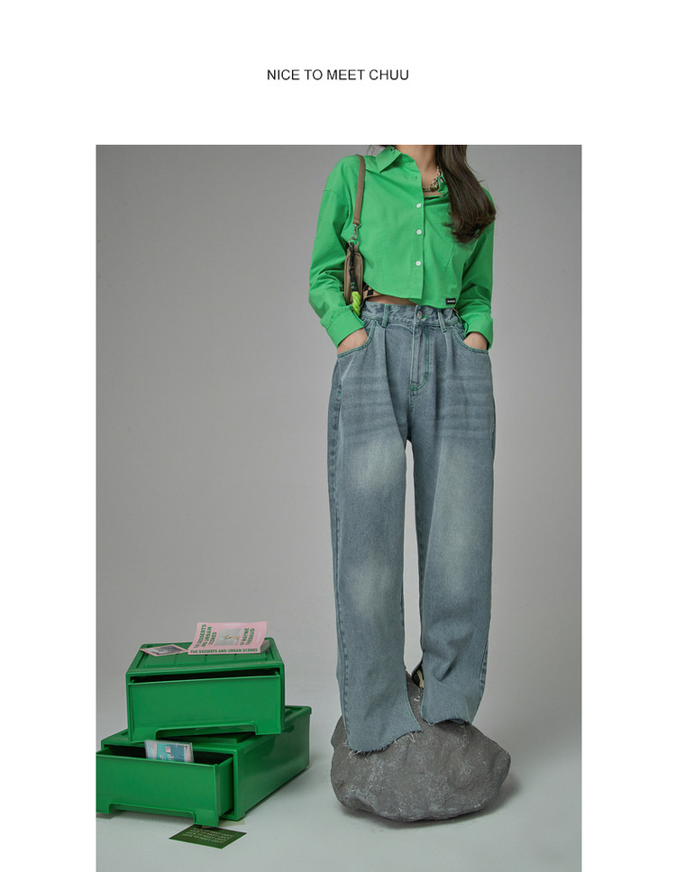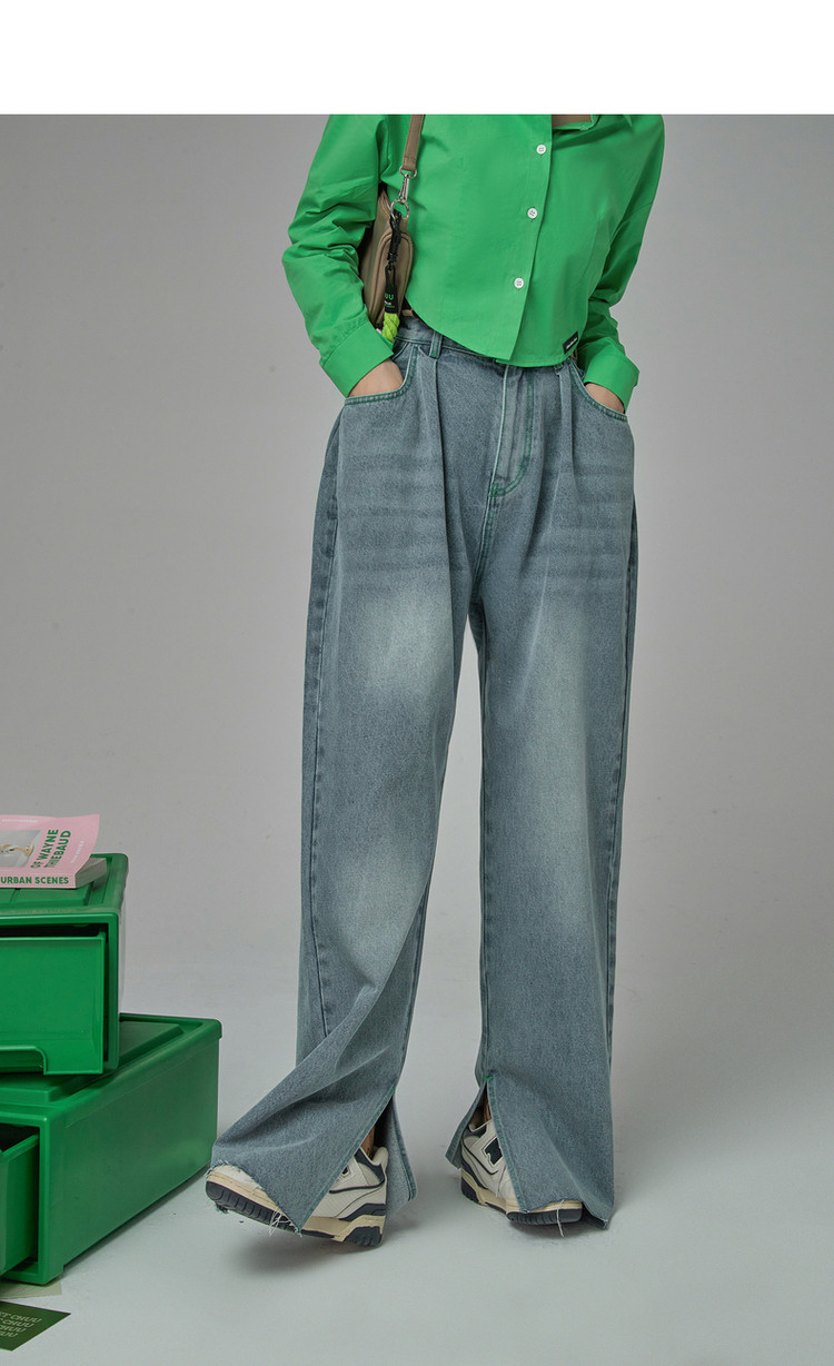 高腰阔腿牛仔裤女士春秋宽松直筒开叉长裤子 536147