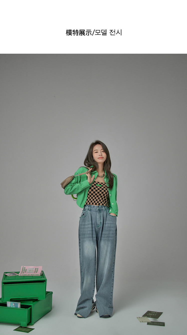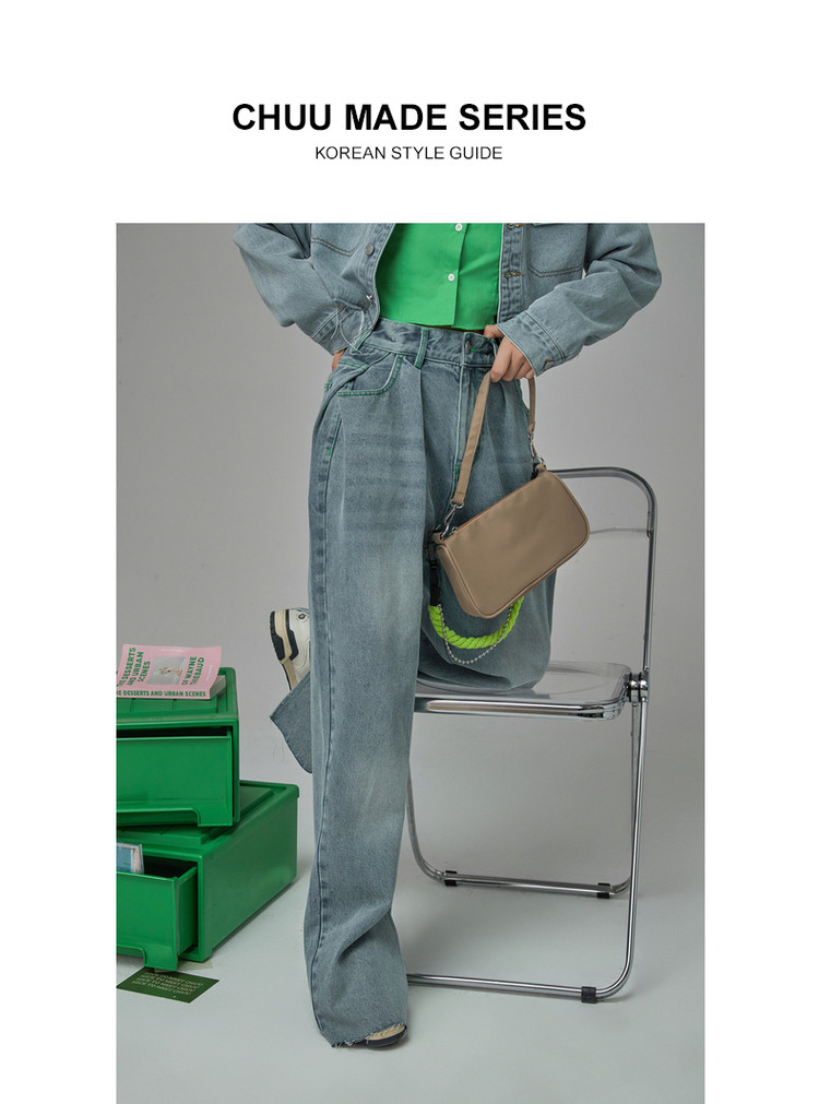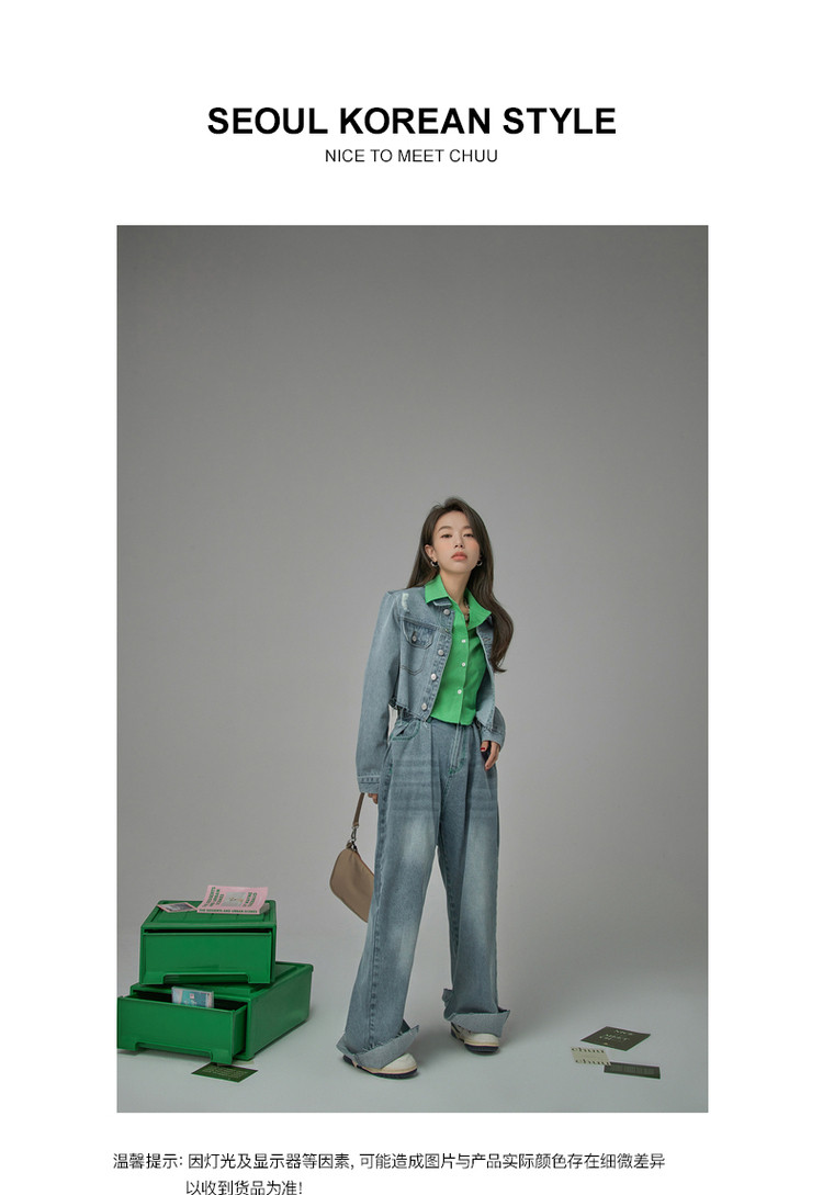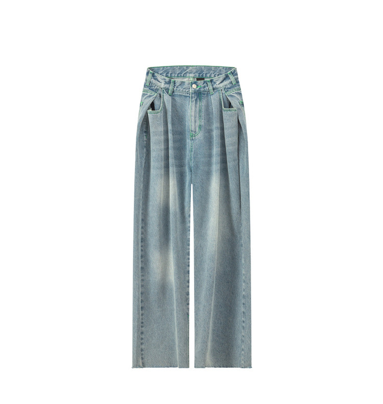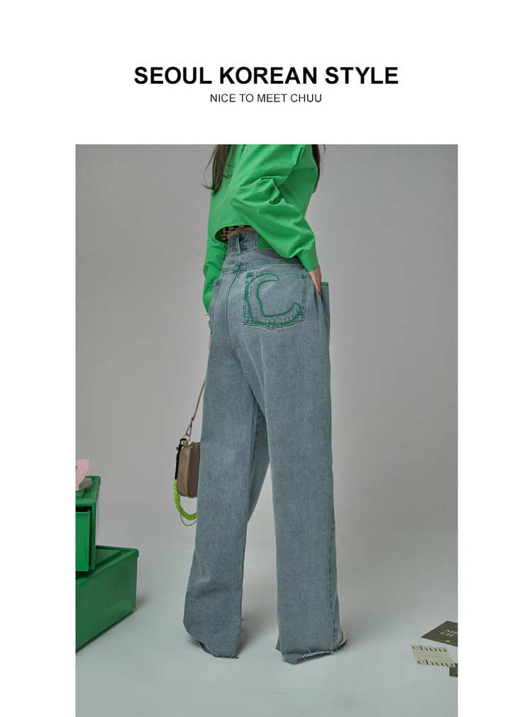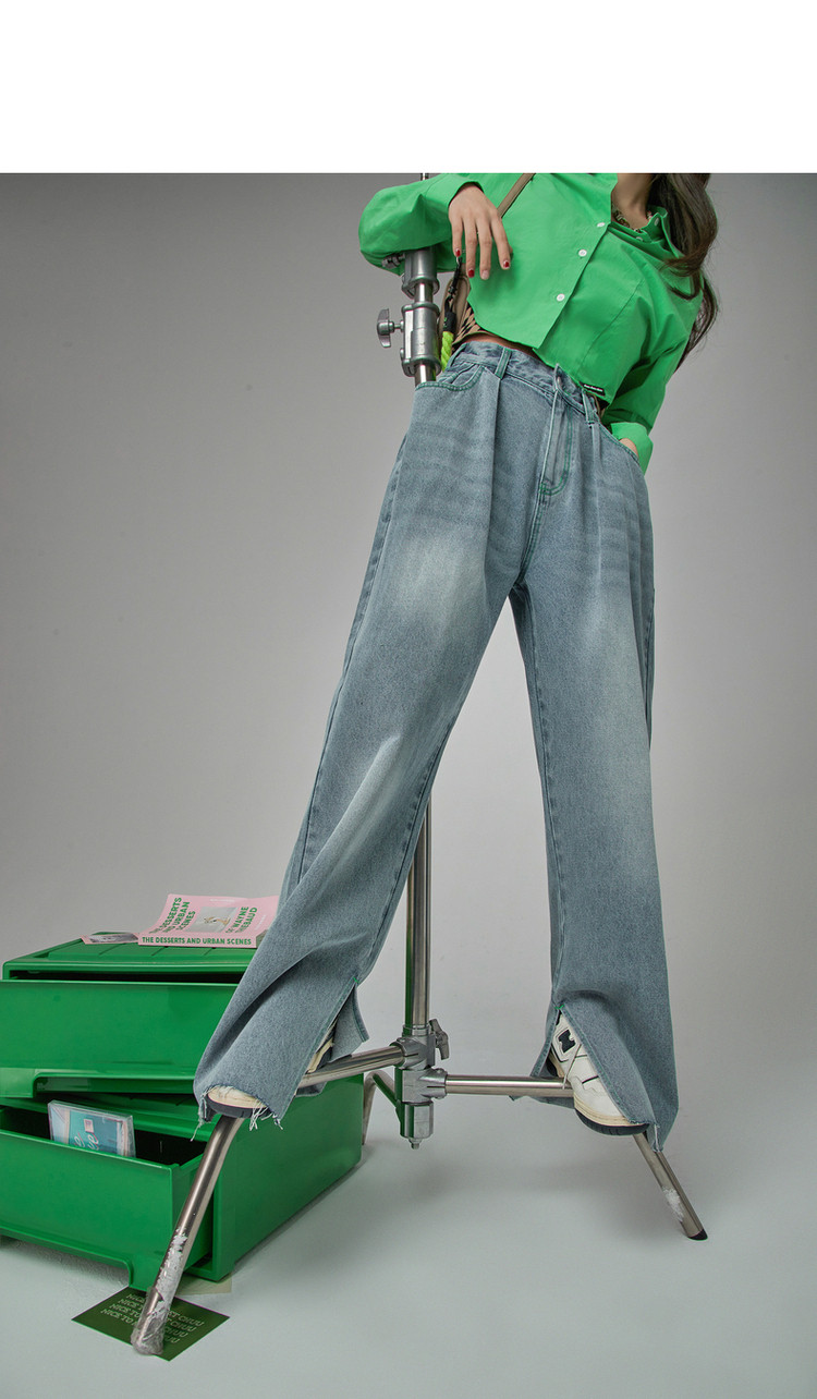 商品名称:高腰阔腿牛仔裤女士春秋宽松直筒开叉长裤子 536147