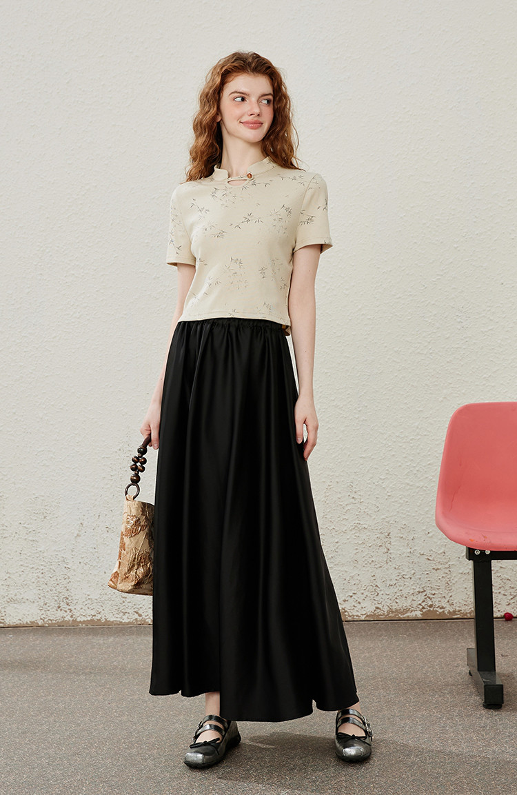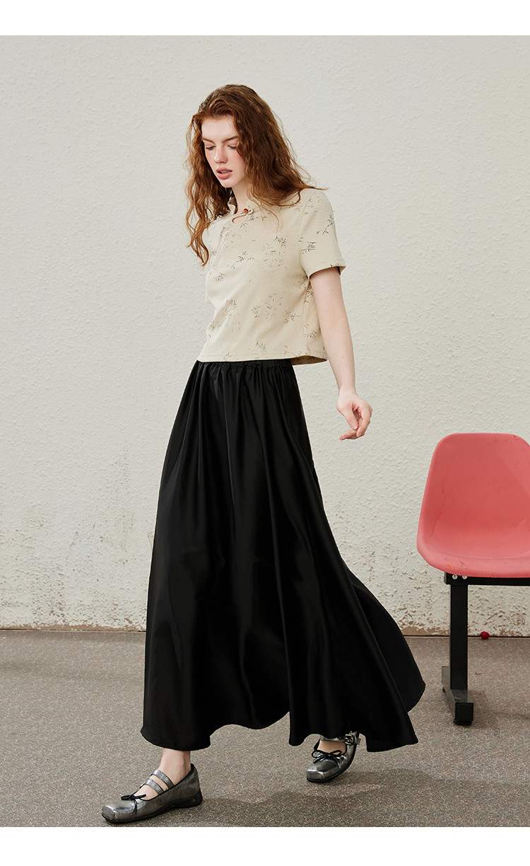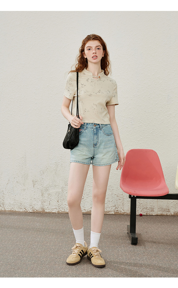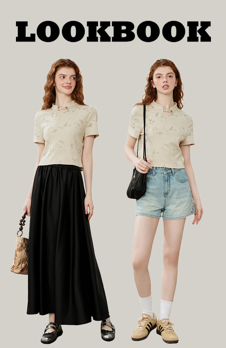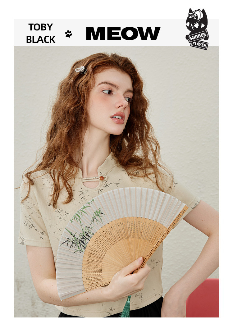 商品名称:国风印花气质设计感盘扣短款女式T恤夏季休闲短袖上衣 601309