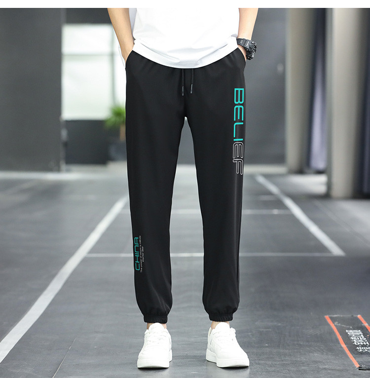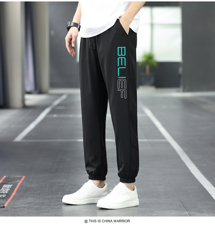 商品名称:男士夏季九分裤薄款透气运动时尚港风潮流印花百搭青年运动休闲裤 865875