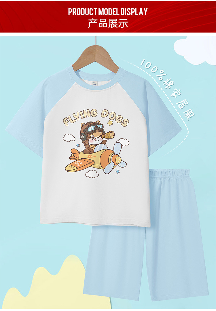 商品名称:儿童家居服夏款男童夏季纯棉飞行员空调服25年夏装男孩短袖套装 172819