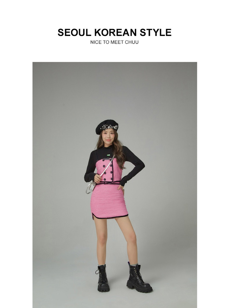 商品名称:高腰撞色半身裙女春秋季侧拉链百搭减龄短裙 403155
