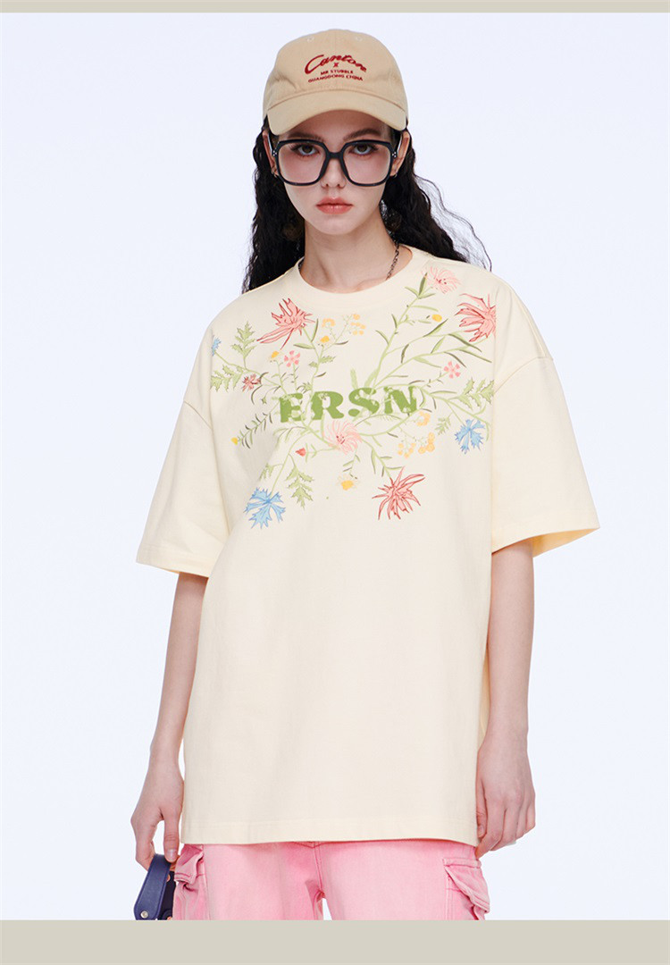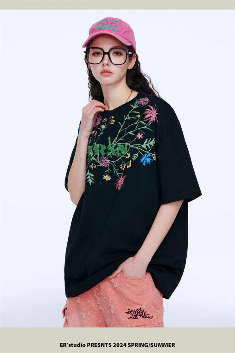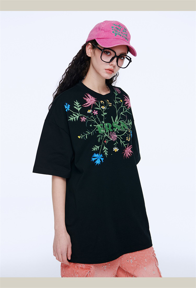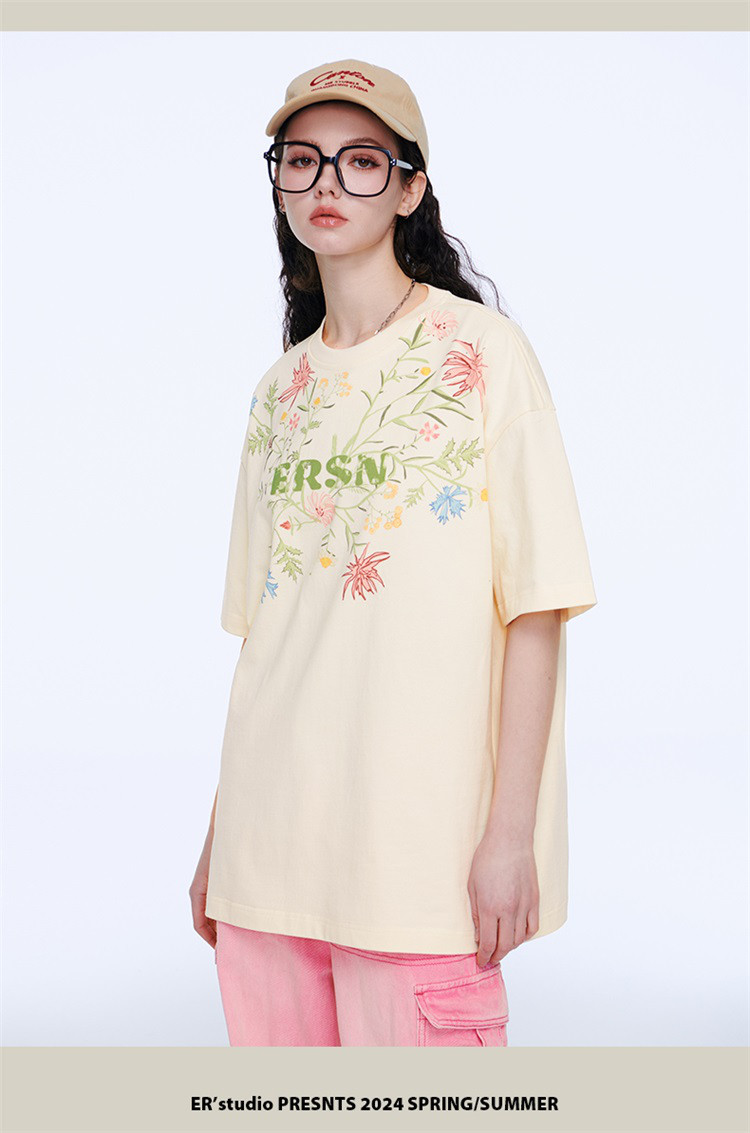 百花齐放T恤美式宽松休闲潮牌短袖男女同款 313431