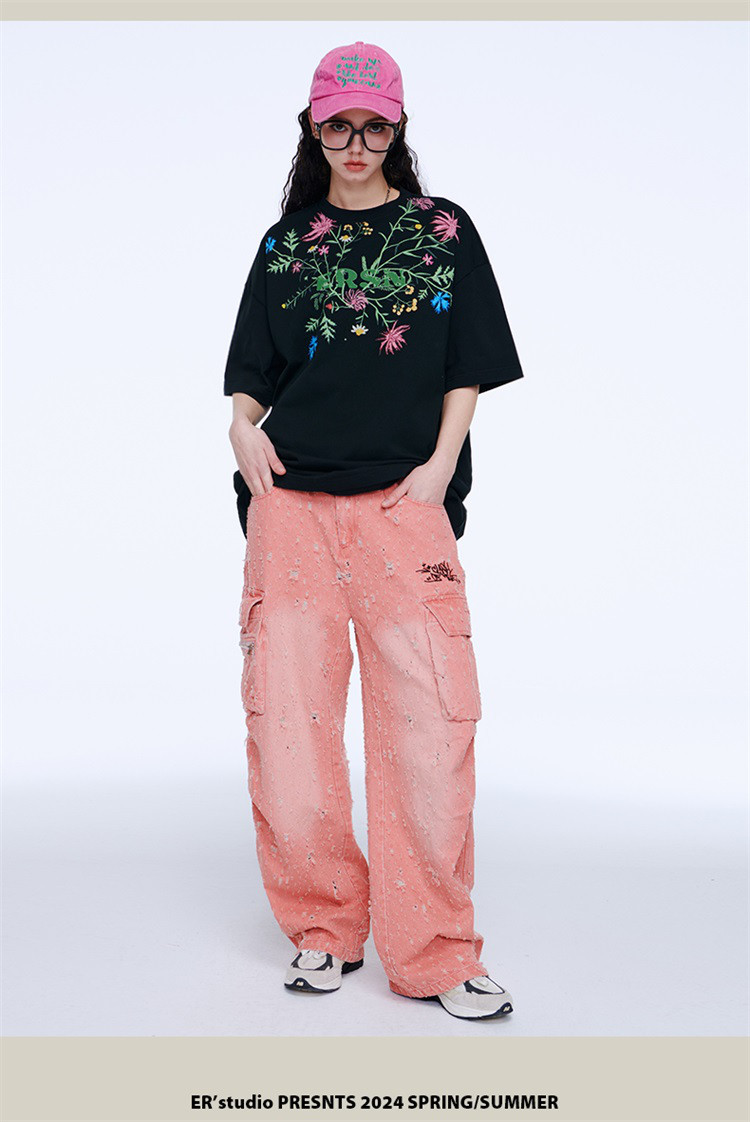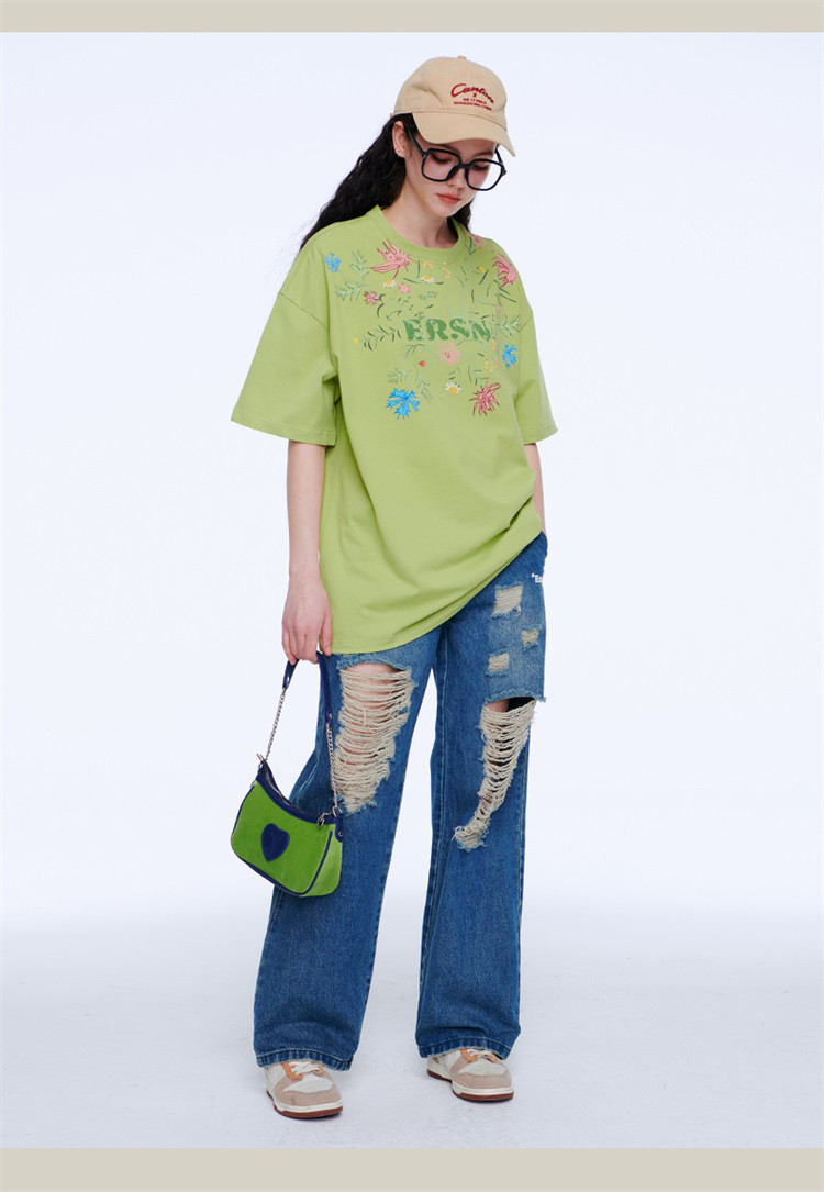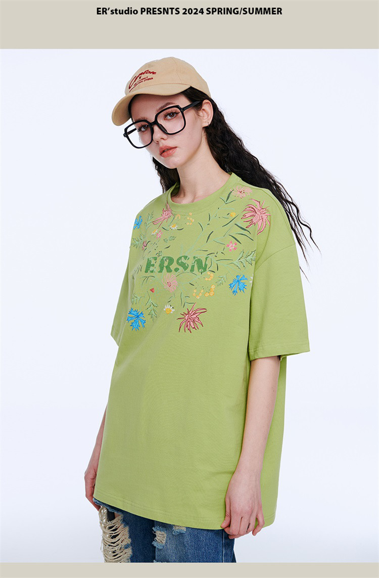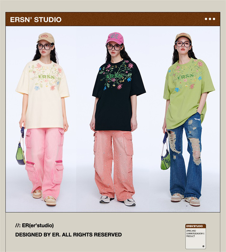 百花齐放T恤美式宽松休闲潮牌短袖男女同款 313431
