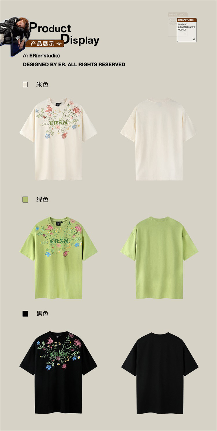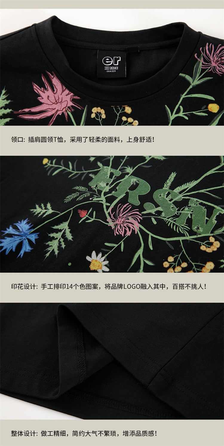 商品名称:百花齐放T恤美式宽松休闲潮牌短袖男女同款 313431