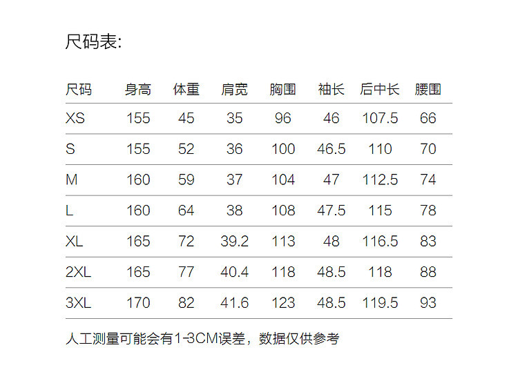 | 尺码 | 裙长(cm) | 肩宽(cm) | 腰围(cm) | 袖长(cm) | 胸围(cm) | 号型 |