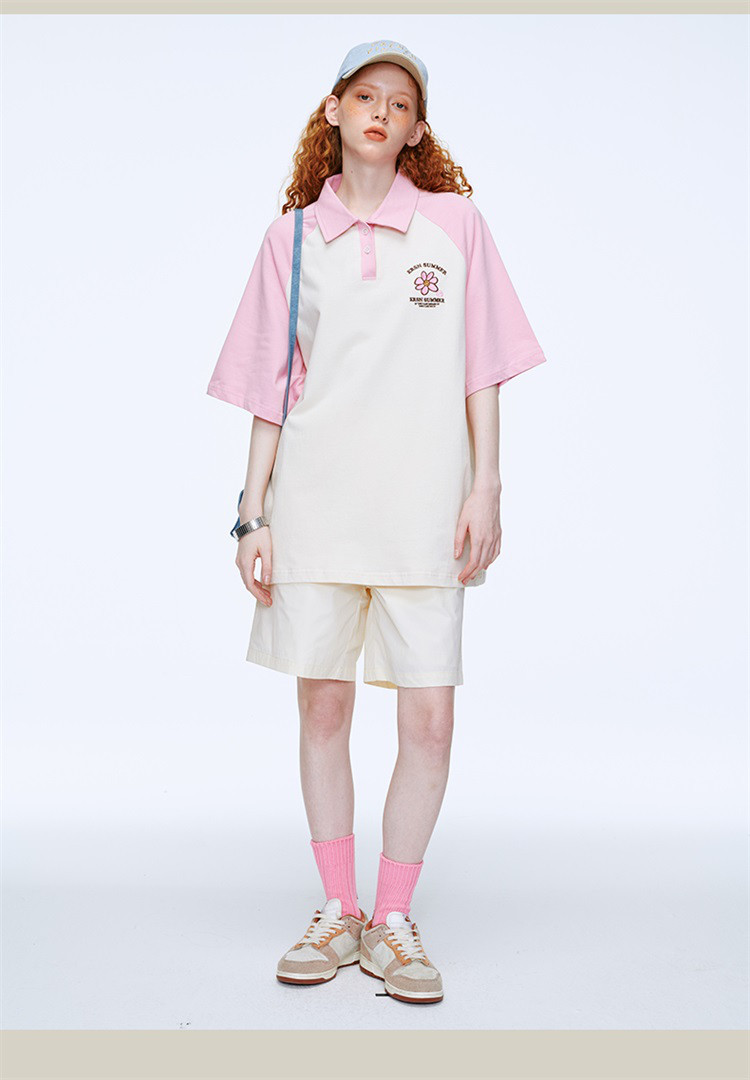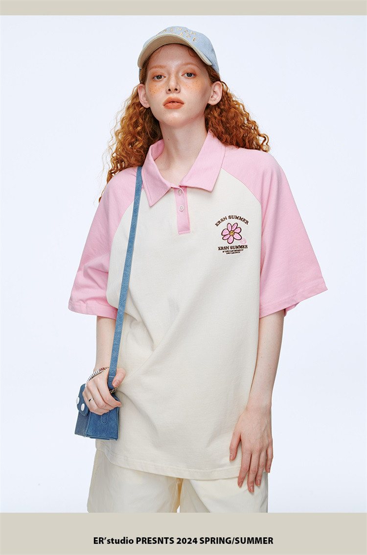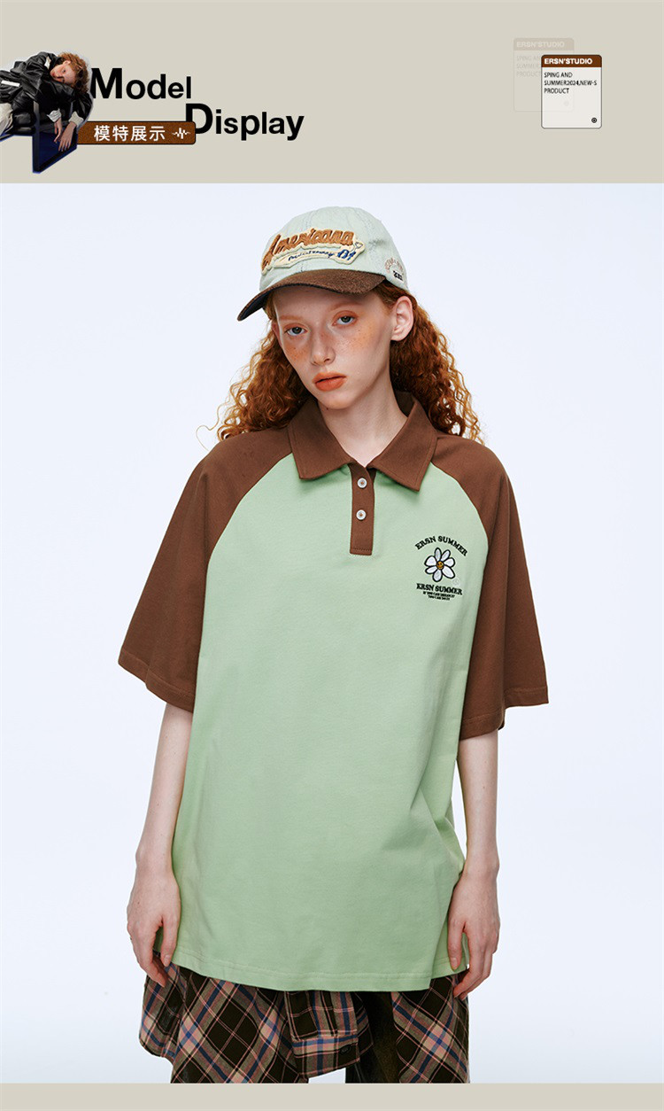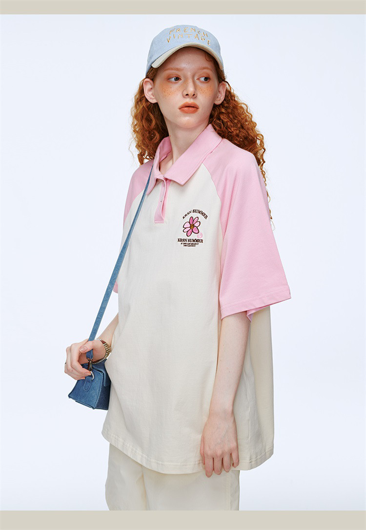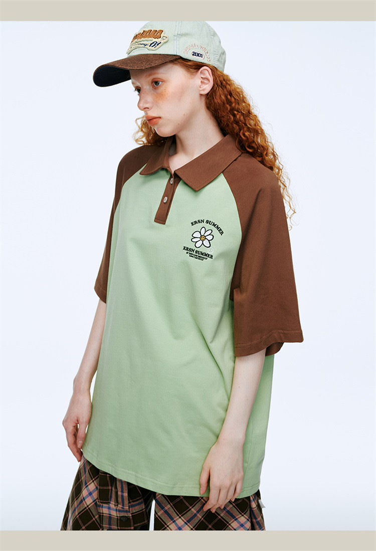 商品名称:【明星同款】复古拼接小雏菊绣花POLO衫情侣装潮牌短袖T恤 363095