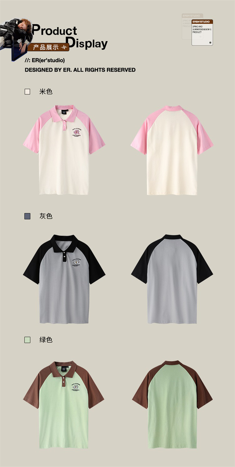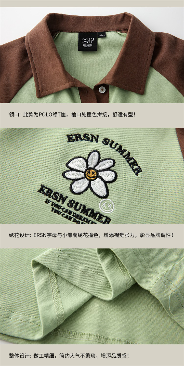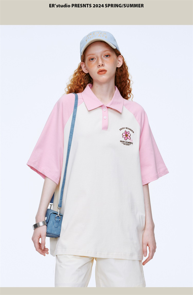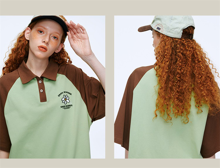 商品名称:【明星同款】复古拼接小雏菊绣花POLO衫情侣装潮牌短袖T恤 363095