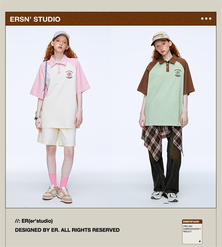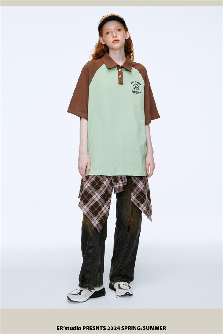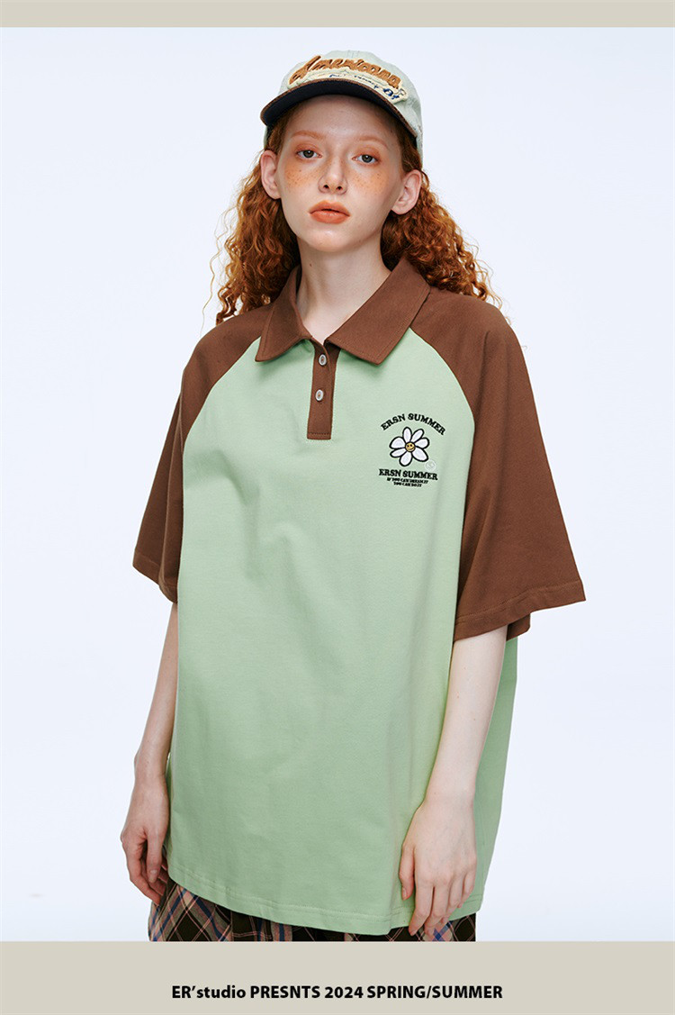 【明星同款】复古拼接小雏菊绣花POLO衫情侣装潮牌短袖T恤 363095
