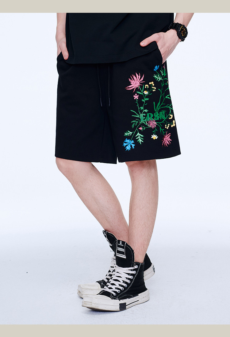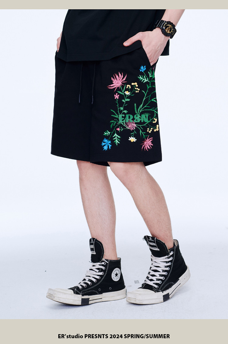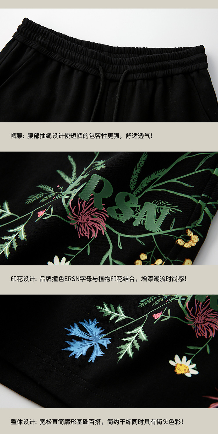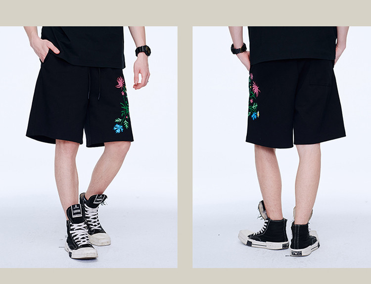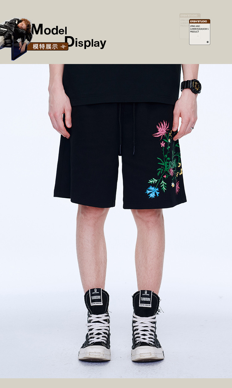 百花齐放短裤夏季潮牌美式宽松休闲裤情侣度假运动裤 560279