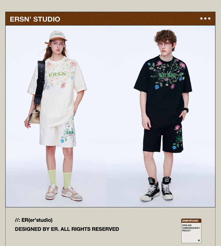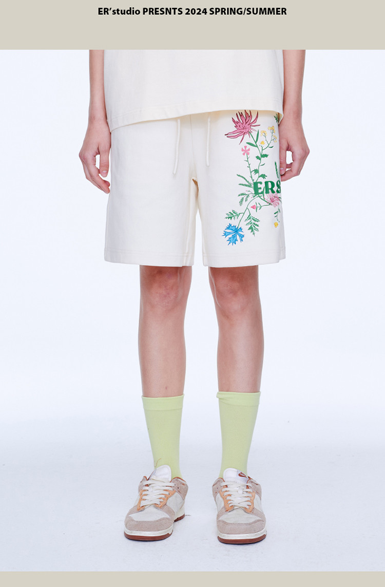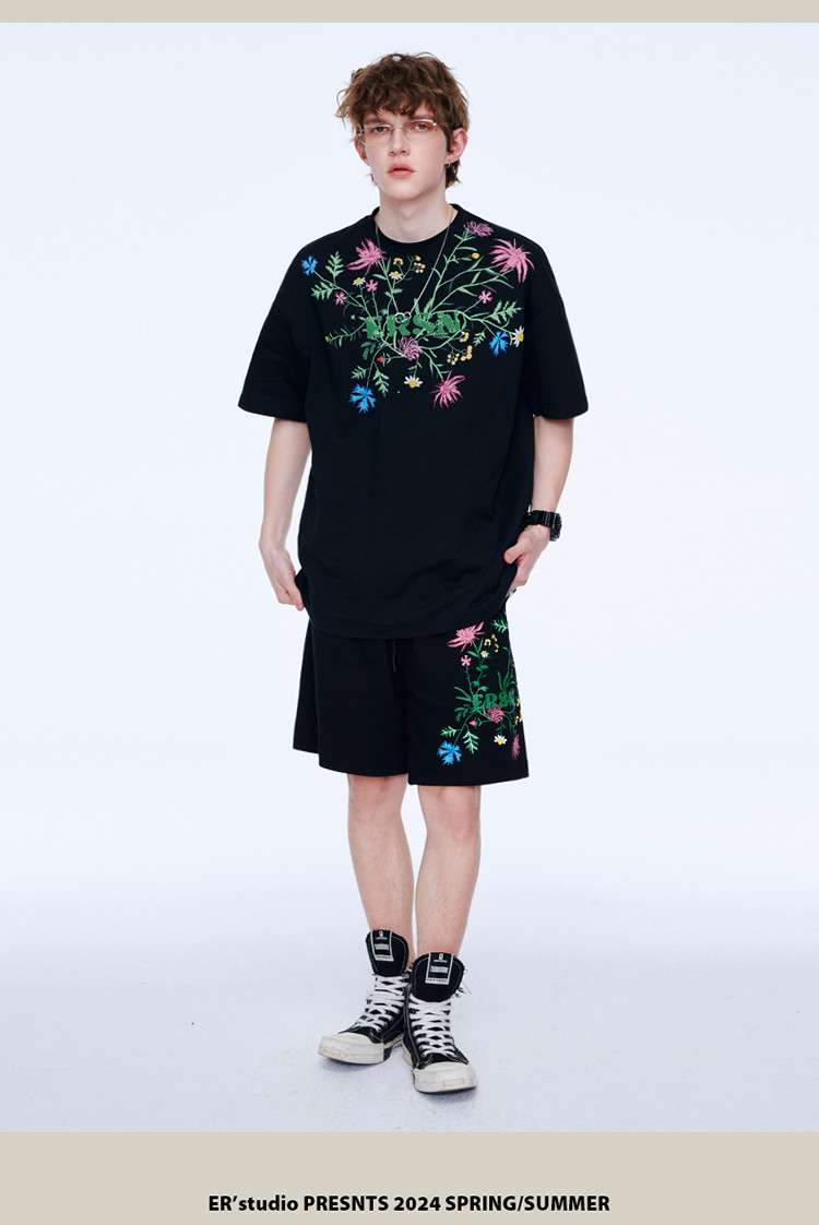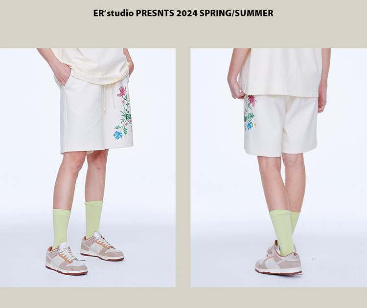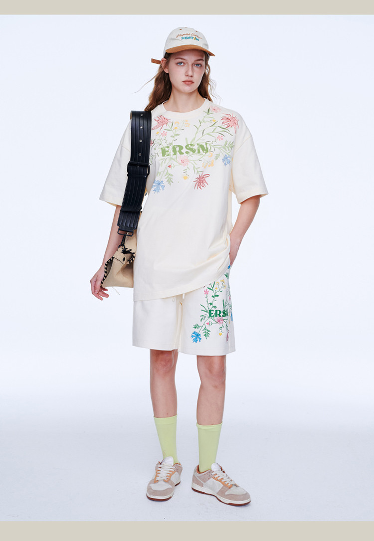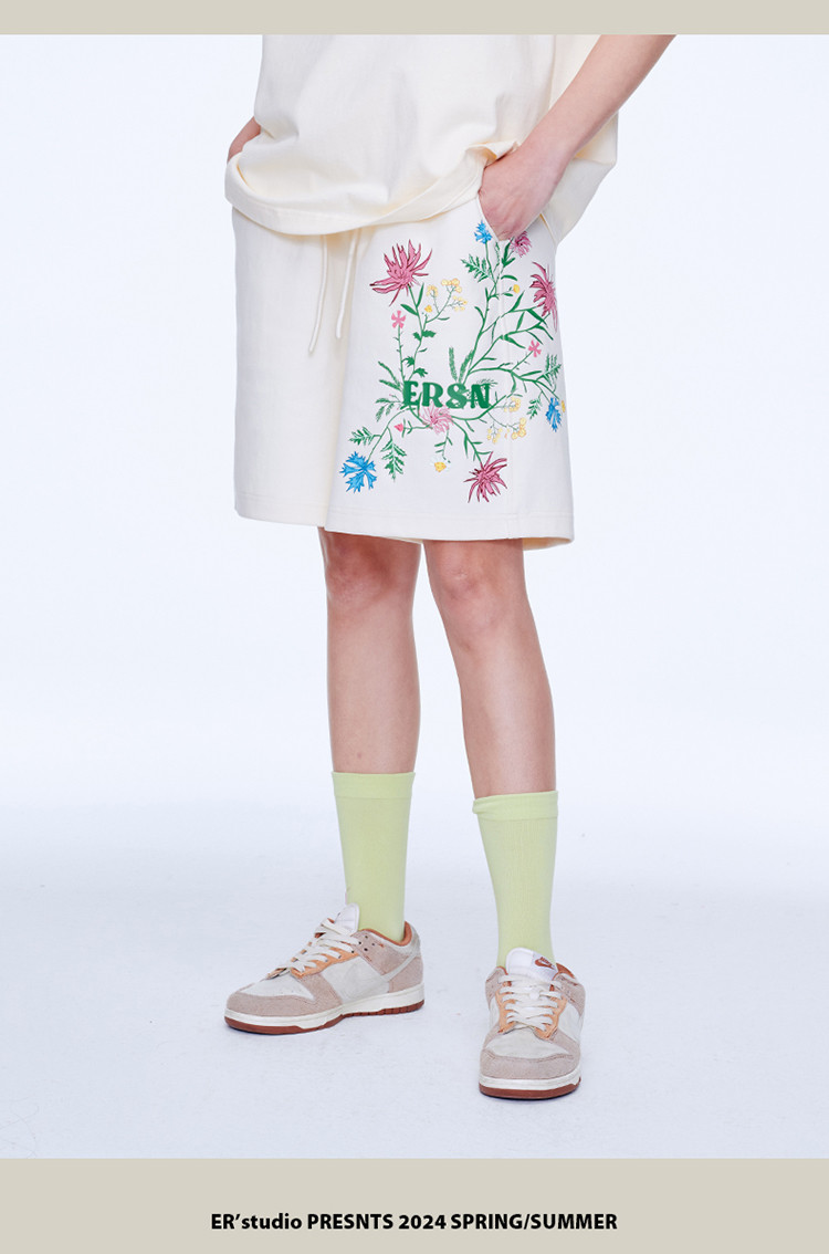 百花齐放短裤夏季潮牌美式宽松休闲裤情侣度假运动裤 560279