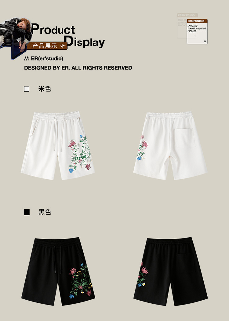 商品名称:百花齐放短裤夏季潮牌美式宽松休闲裤情侣度假运动裤 560279