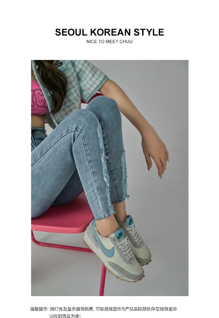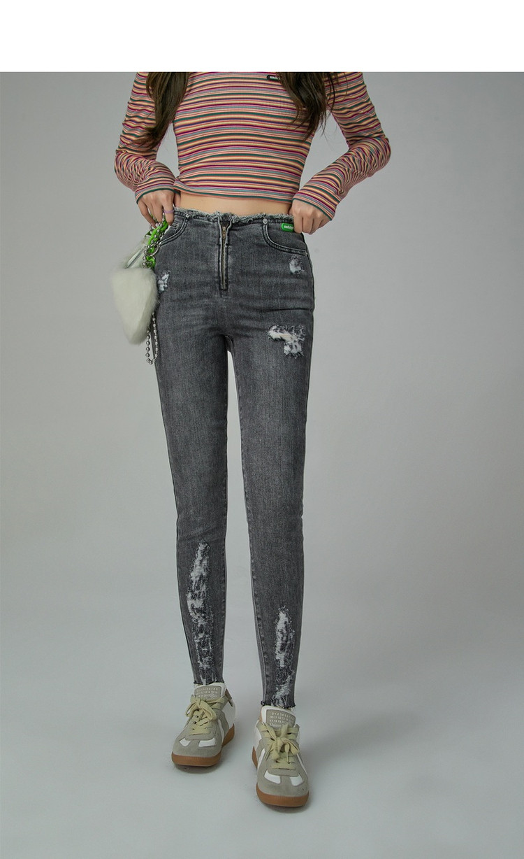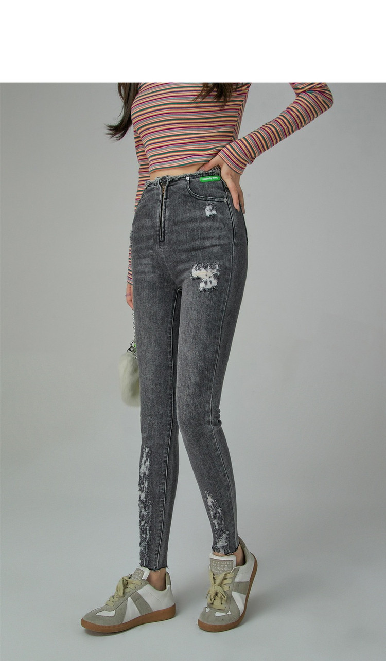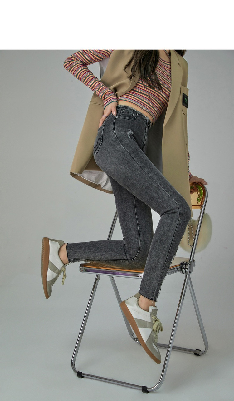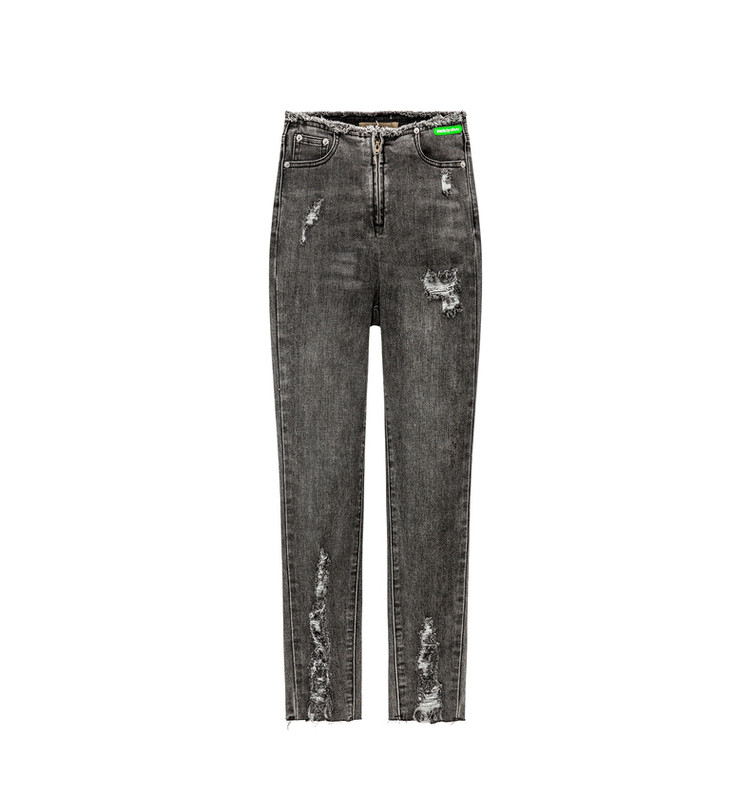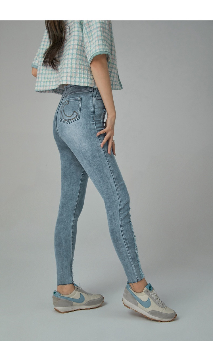 商品名称:破洞铅笔牛仔裤女春秋高腰修身小脚九分裤子 277011