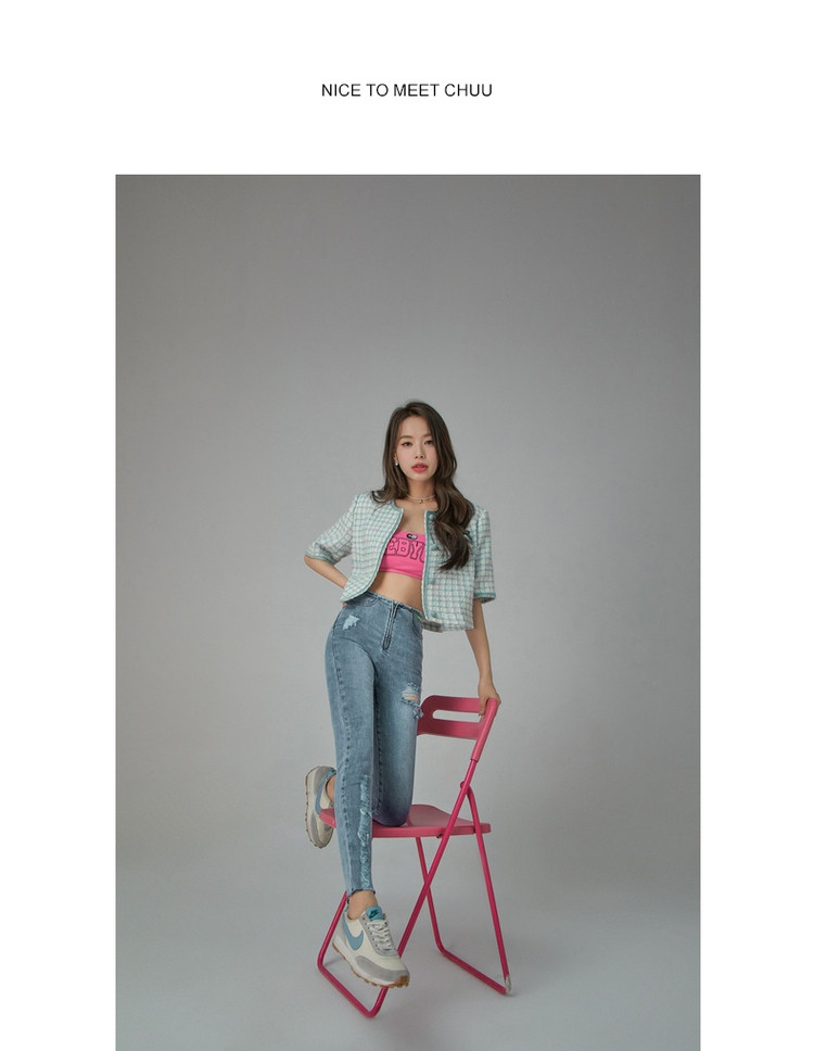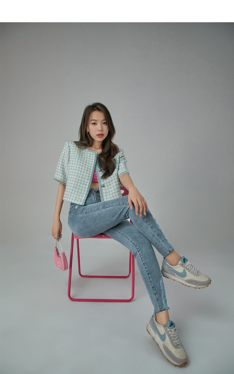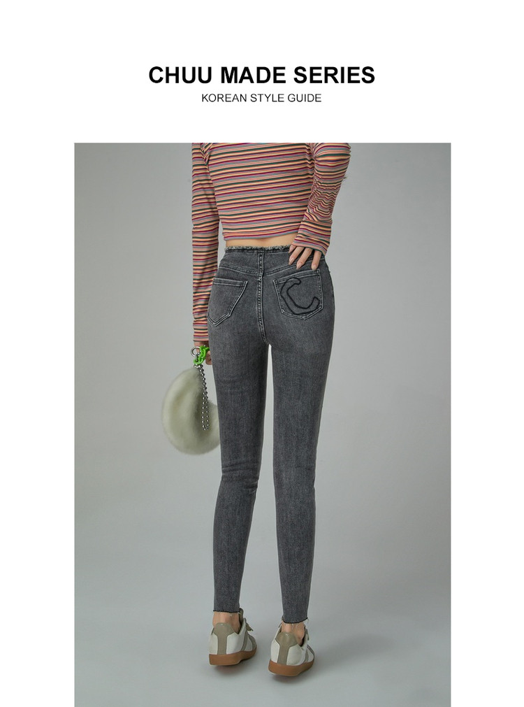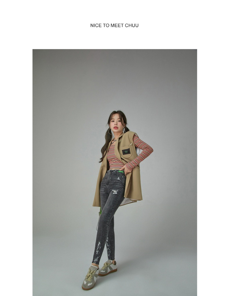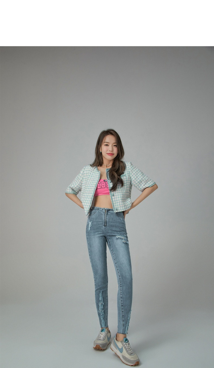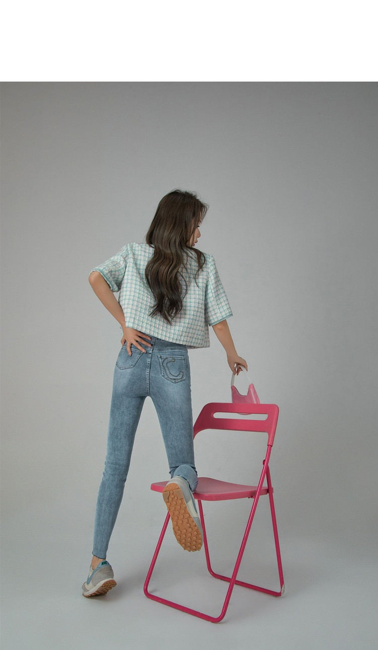 商品名称:破洞铅笔牛仔裤女春秋高腰修身小脚九分裤子 277011