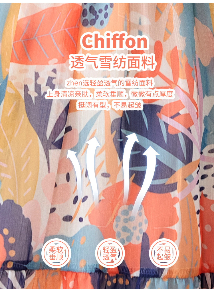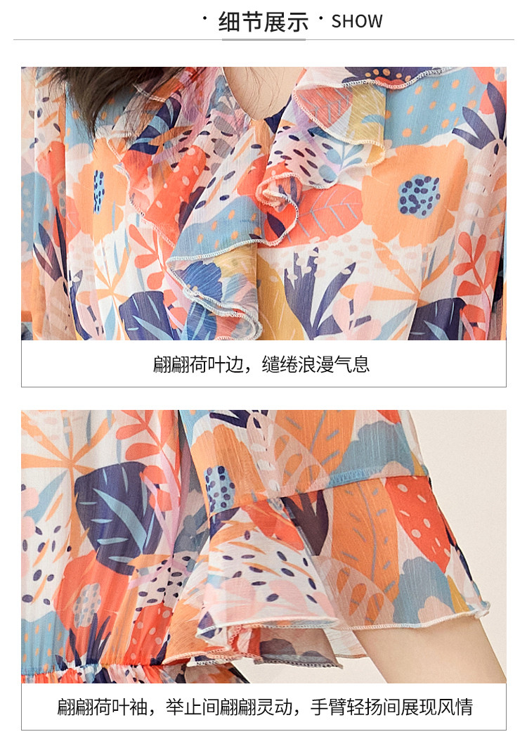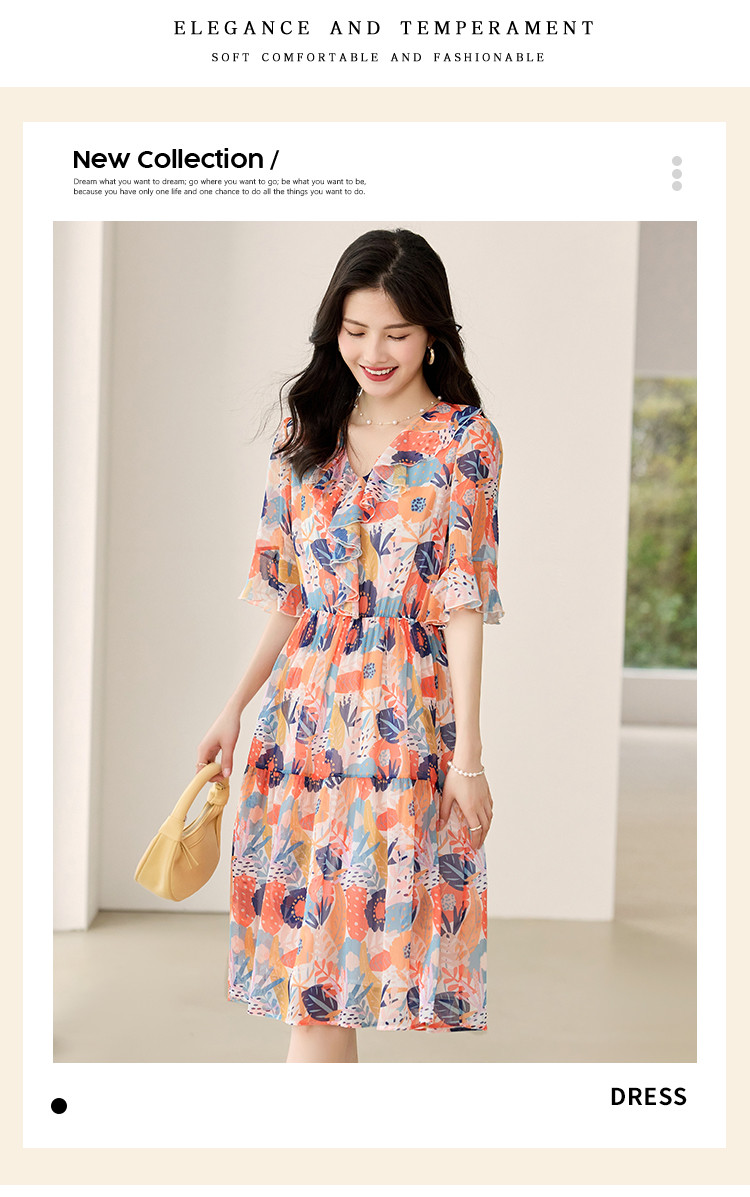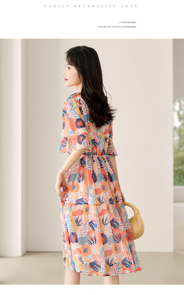 商品名称:淑女气质2025夏装女装时尚花边袖显瘦雪纺优雅轻奢连衣裙 454168