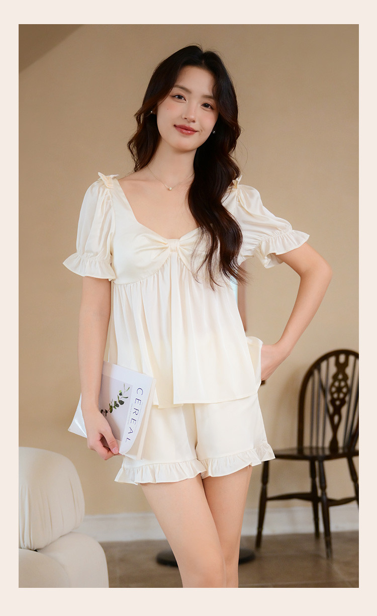【带胸垫】高级感丝滑缎面女士睡衣夏季可外穿短袖短裤家居服套装 131147