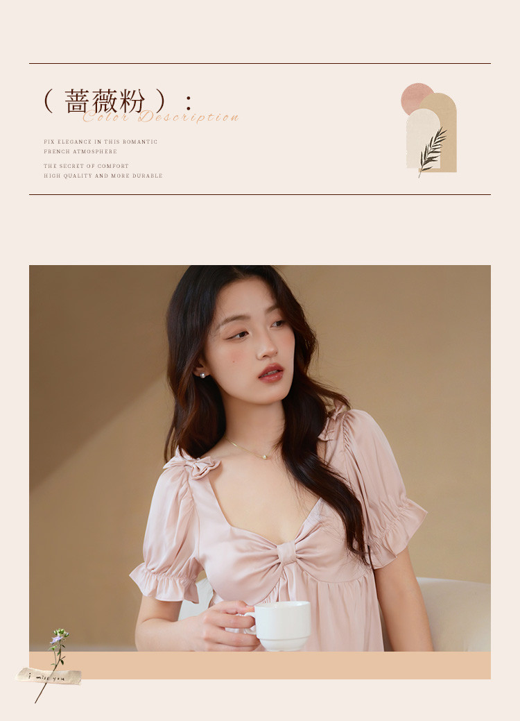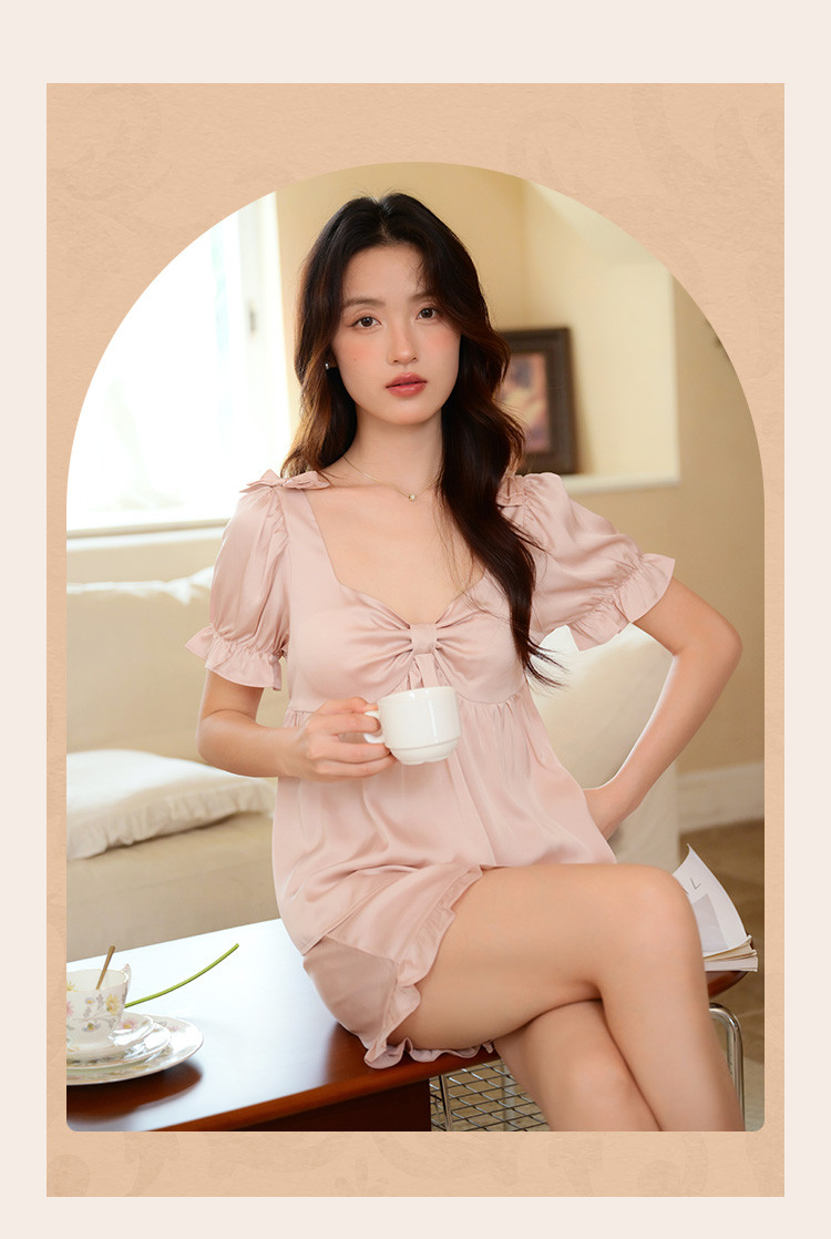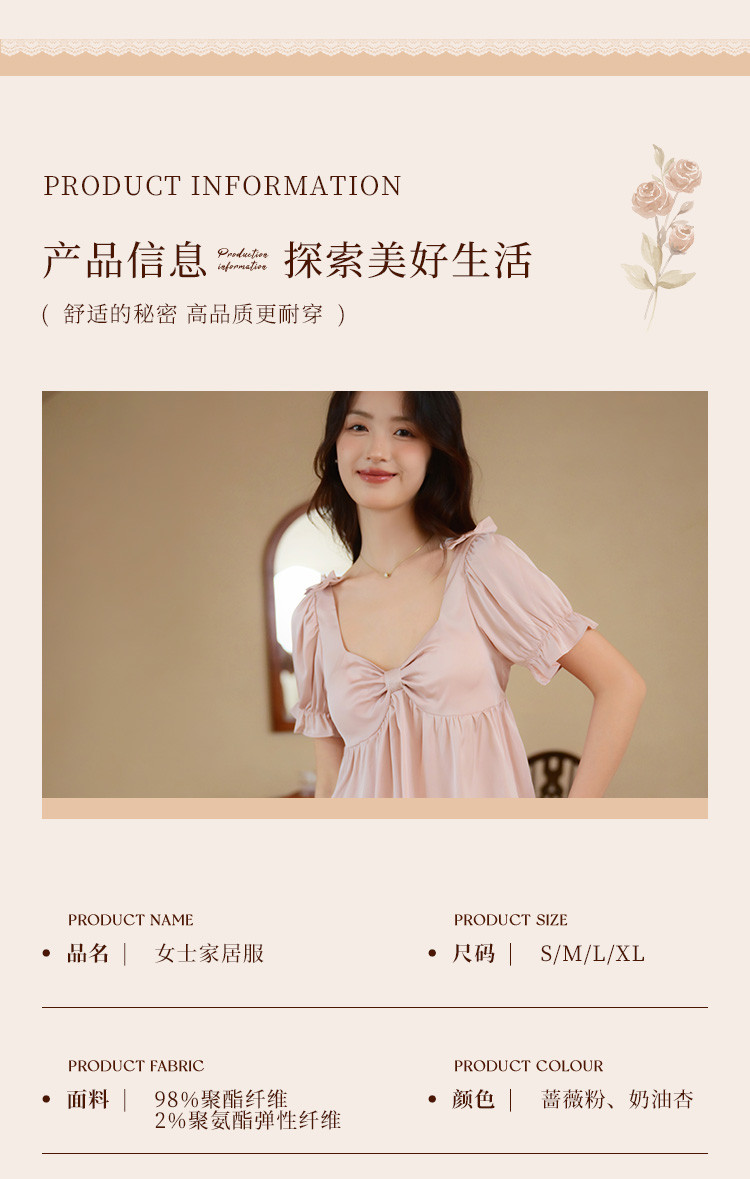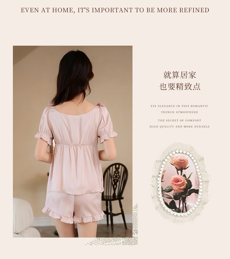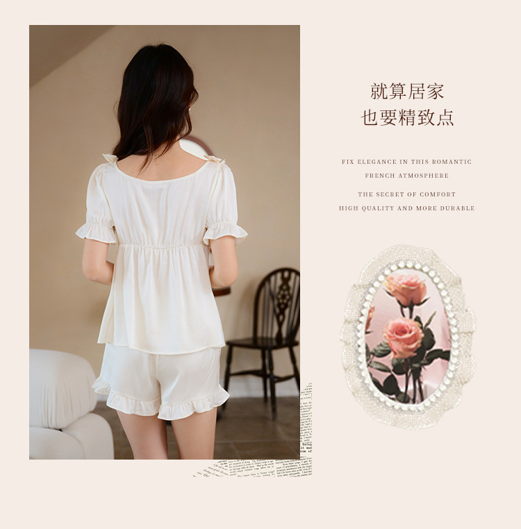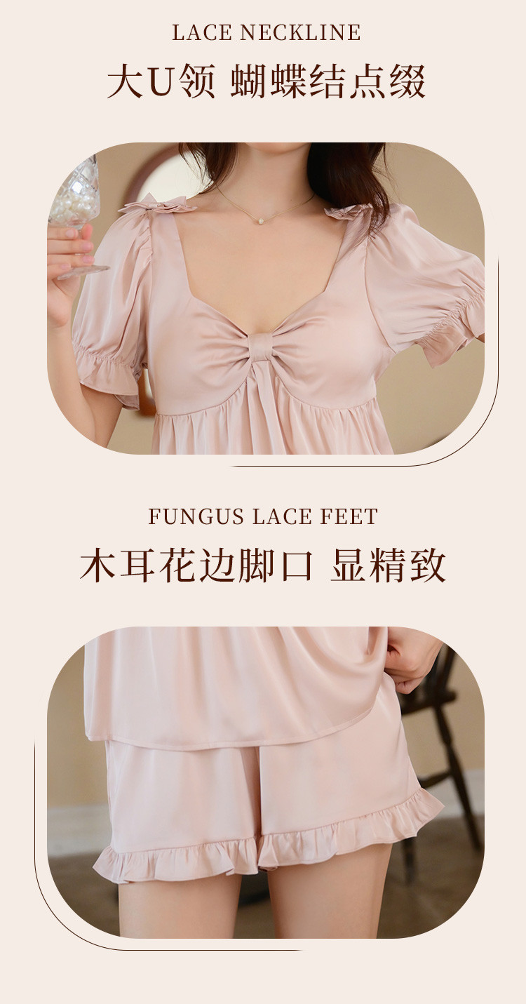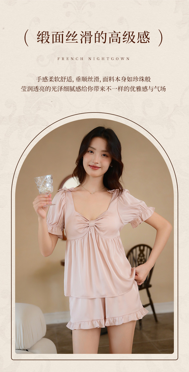商品名称:【带胸垫】高级感丝滑缎面女士睡衣夏季可外穿短袖短裤家居服套装 131147