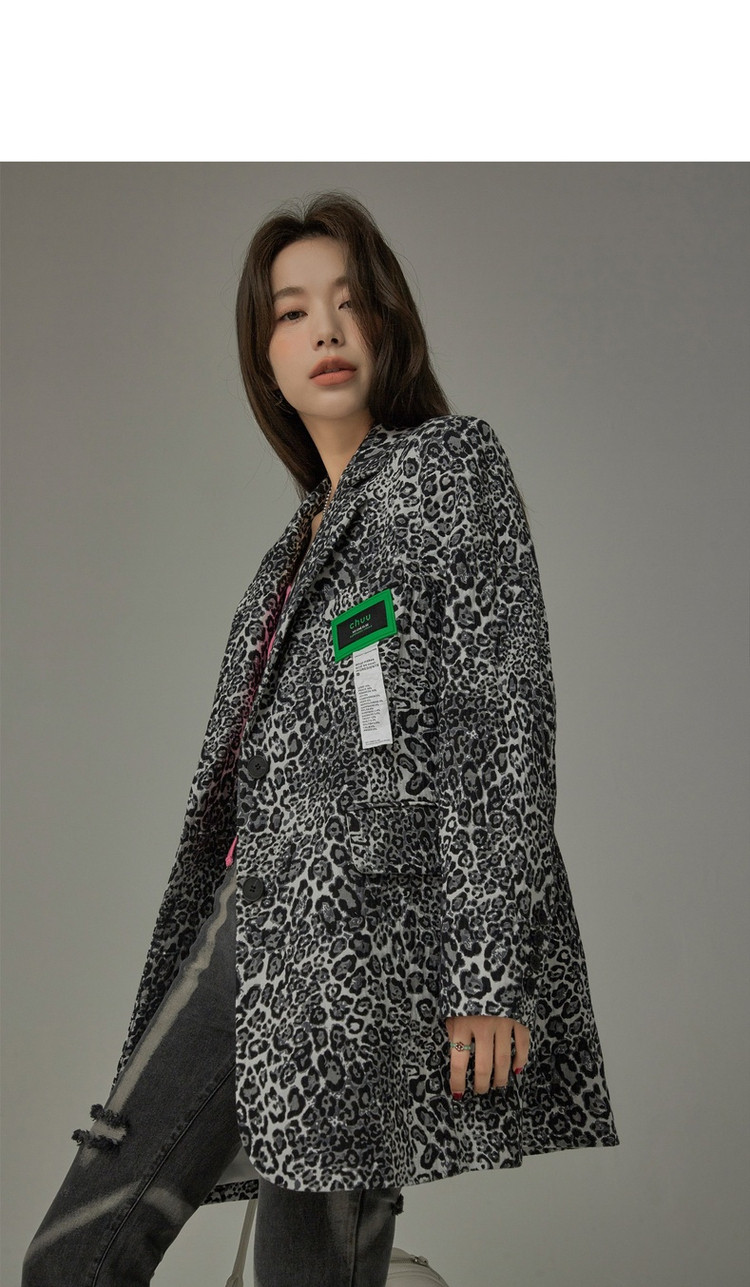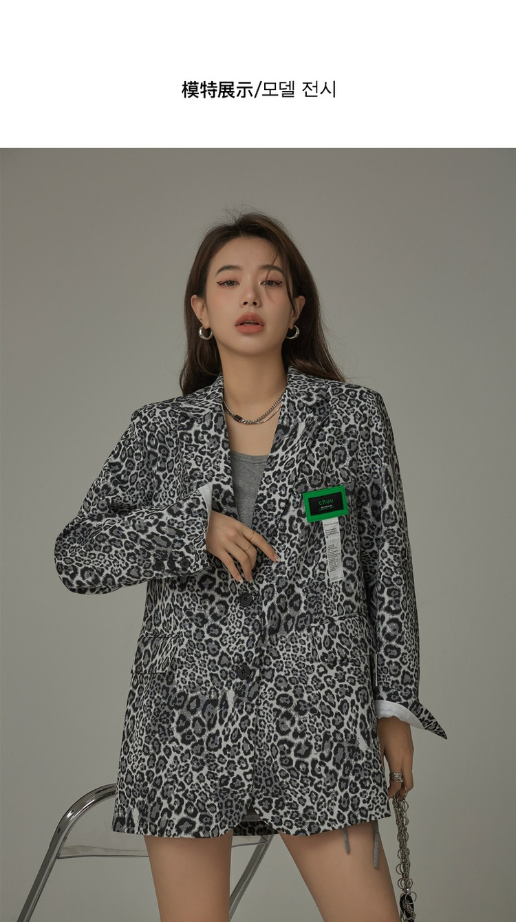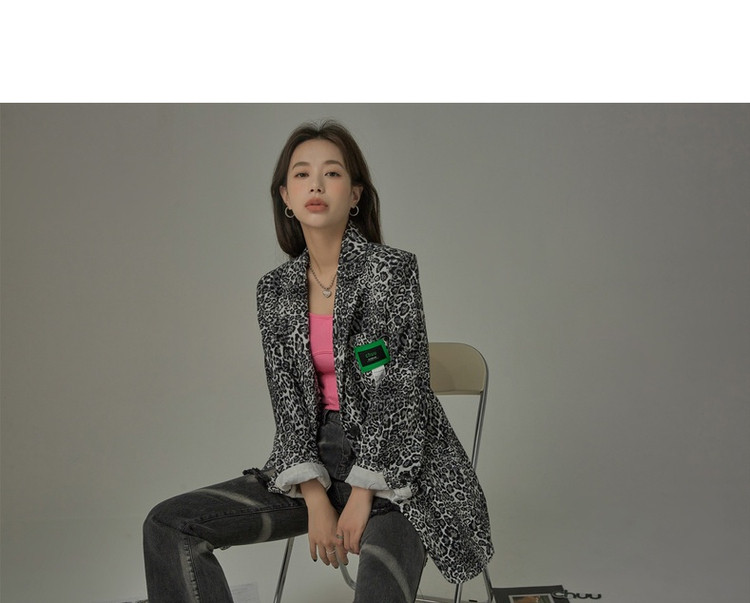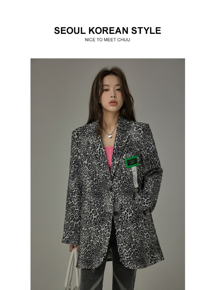商品名称:炸街豹纹贴标时髦西装女款春秋流时尚长袖外套 972691
