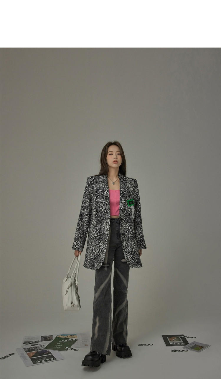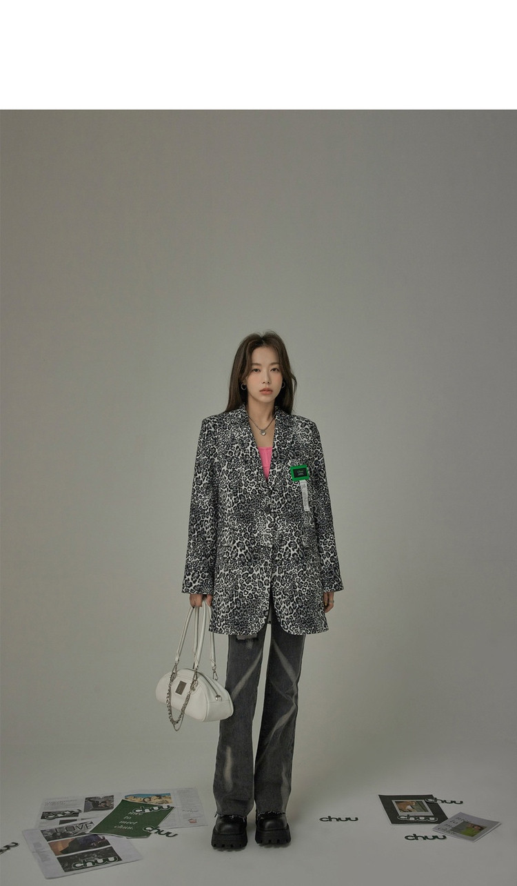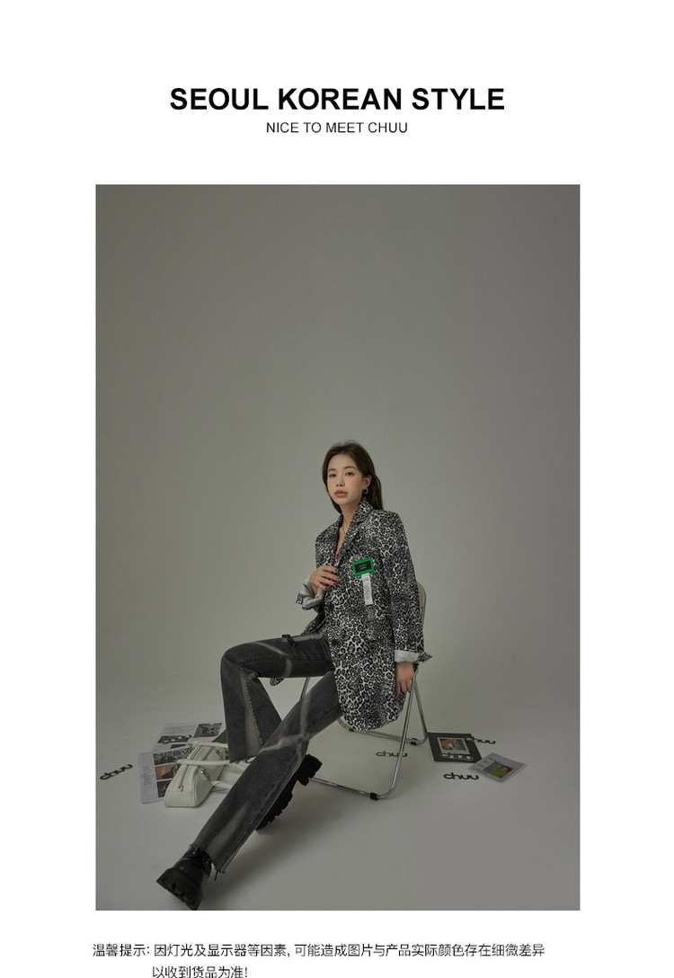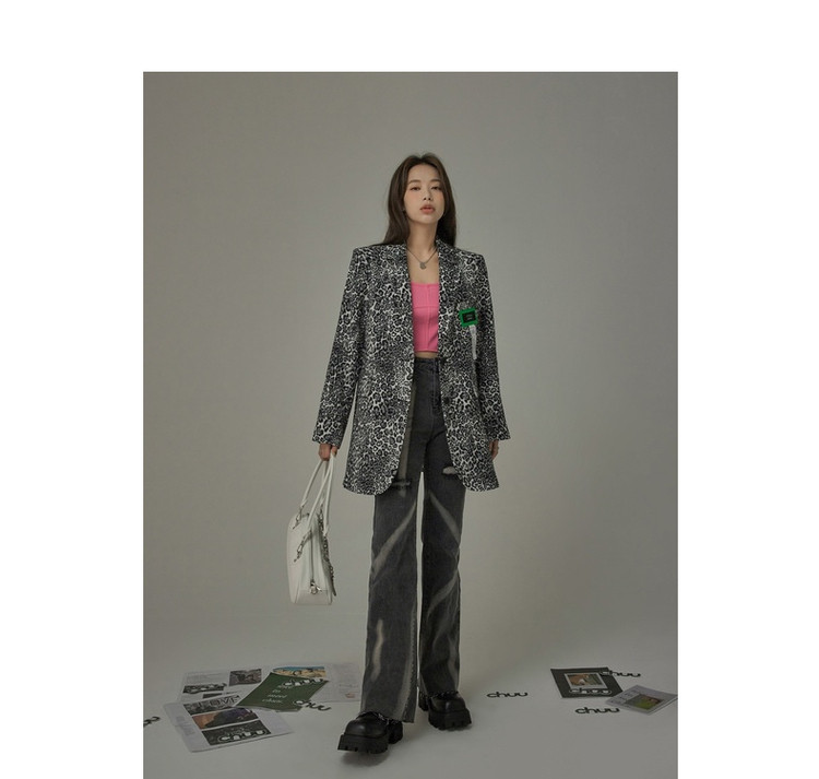 商品名称:炸街豹纹贴标时髦西装女款春秋流时尚长袖外套 972691