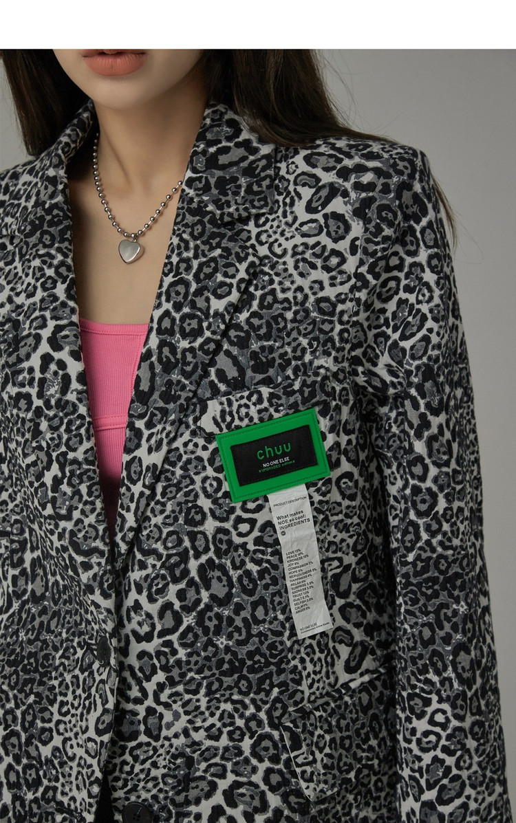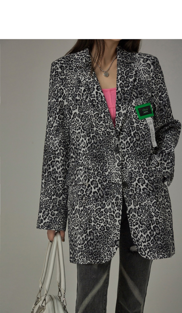 炸街豹纹贴标时髦西装女款春秋流时尚长袖外套 972691