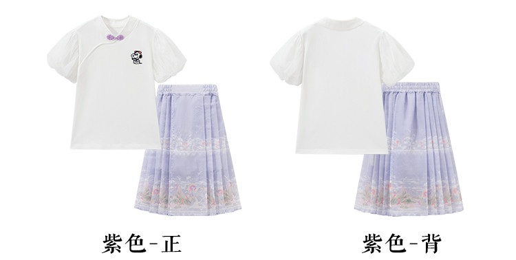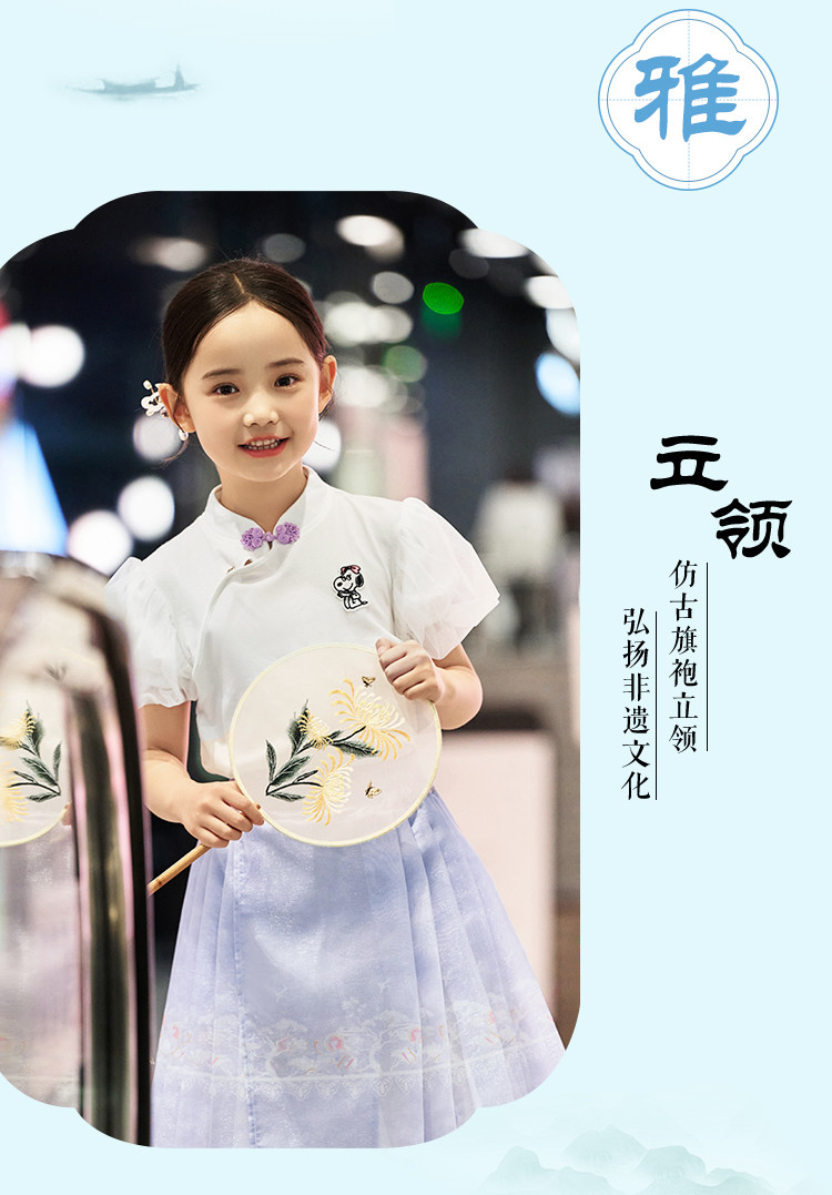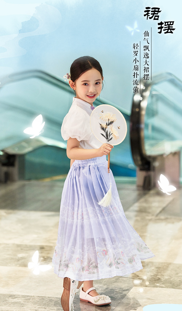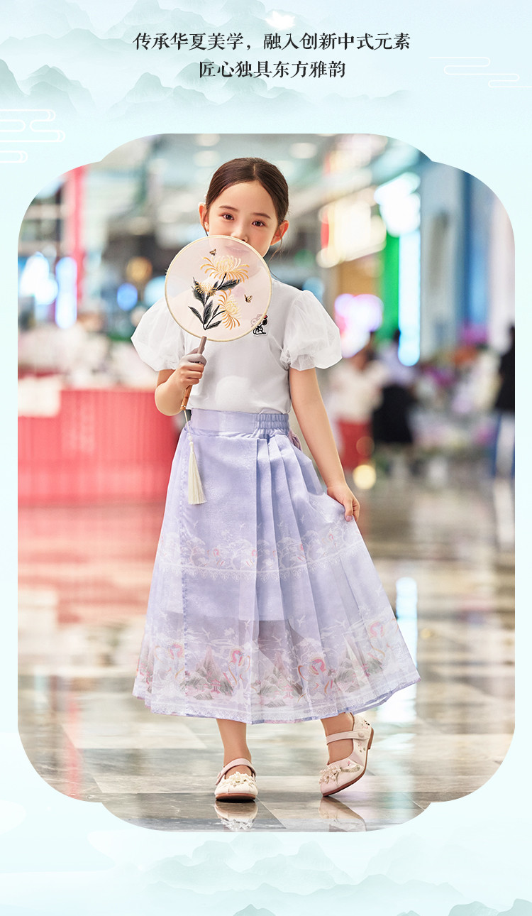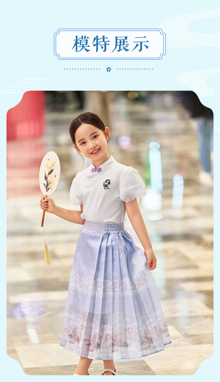 商品名称:新中式汉服马面裙套装夏季女童国风泡泡袖上衣马面裙两件套 381784