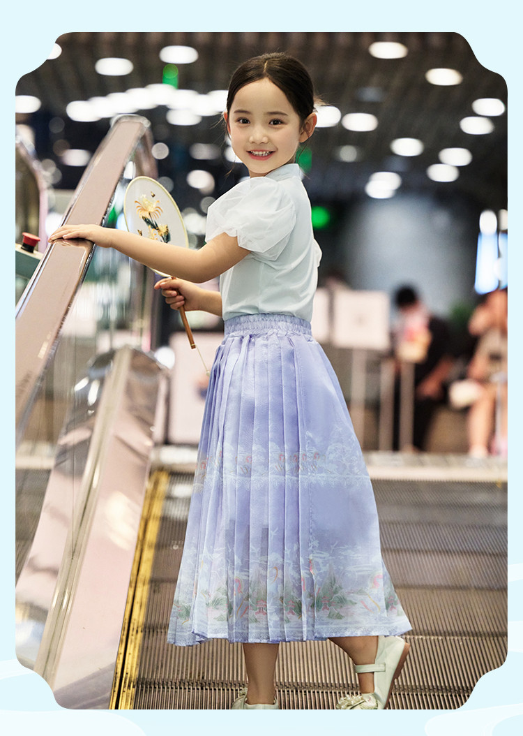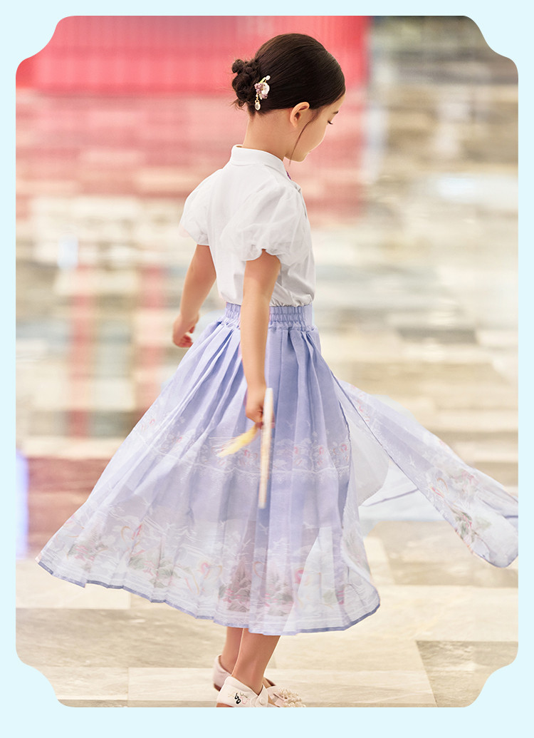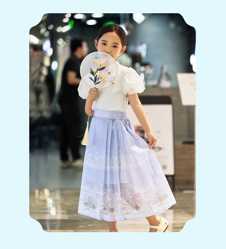 新中式汉服马面裙套装夏季女童国风泡泡袖上衣马面裙两件套 381784
