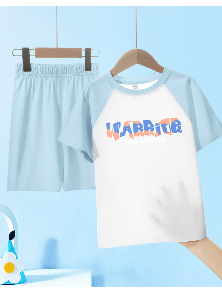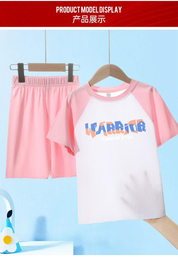 商品名称:儿童睡衣男孩夏季短袖短裤套装25年潮夏装女大童纯棉字母家居服 168723