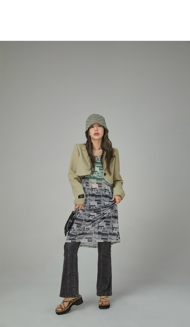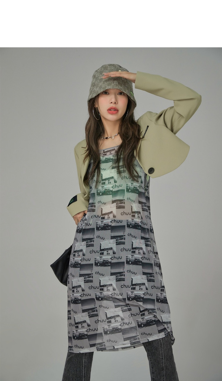 CHUU轻薄款叠穿连衣裙女秋季时尚简约气质宽松a字吊带裙 515603