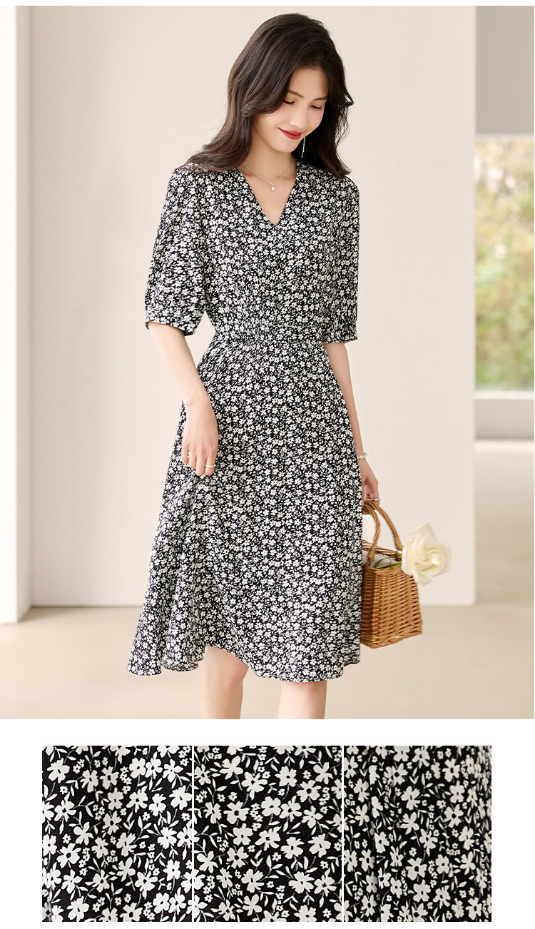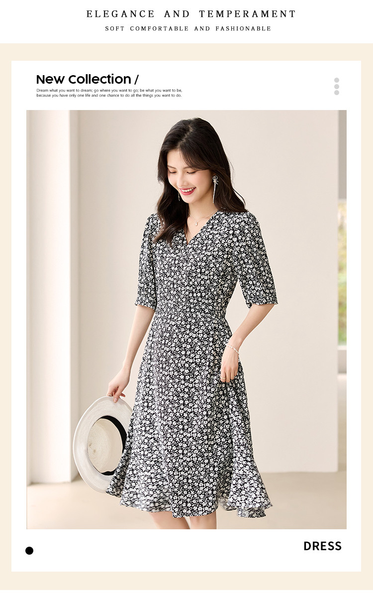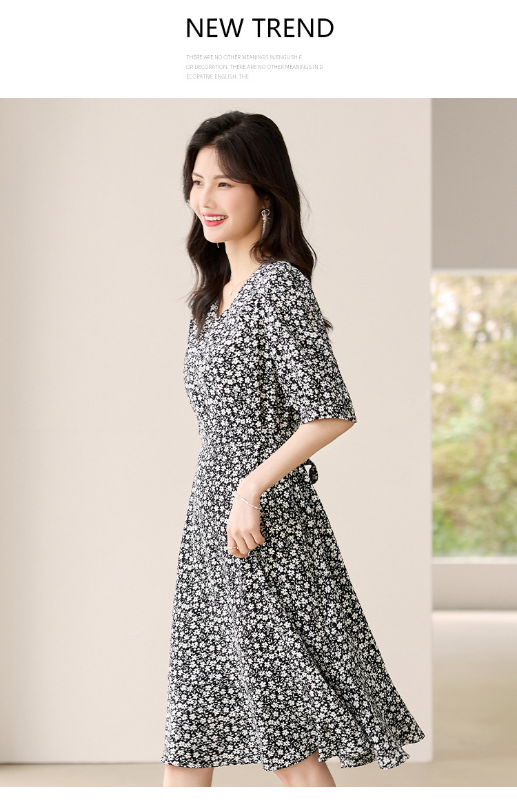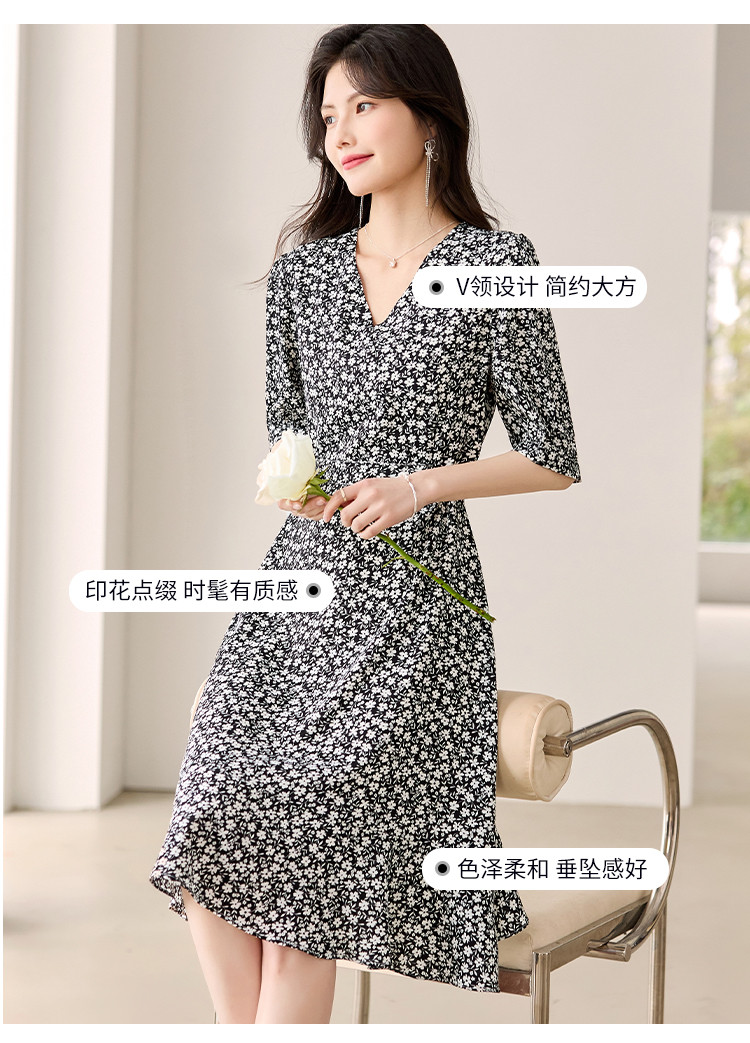 商品名称:2025夏装女装知性淑女气质浪漫印花雪纺轻奢连衣裙 507736