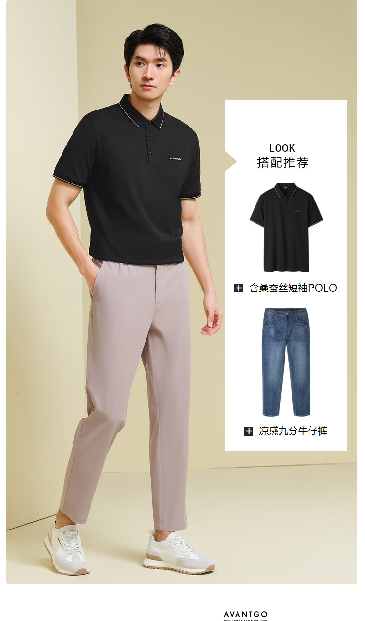 商品名称:【含桑蚕丝】夏季纯色轻商务经典系列男士短袖POLO衫 829000