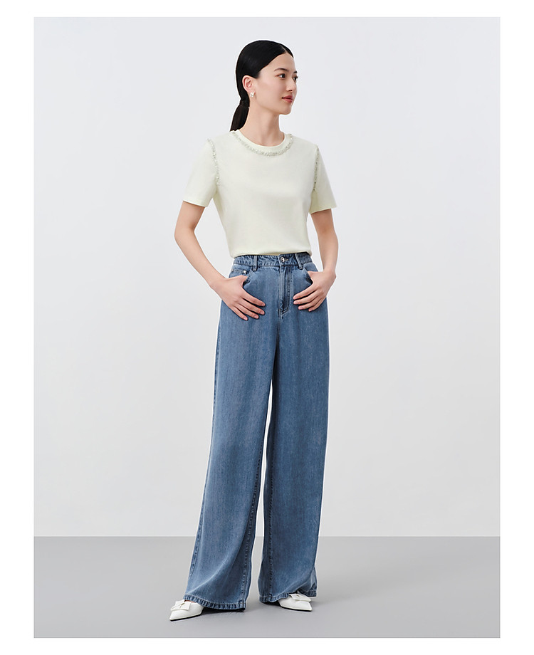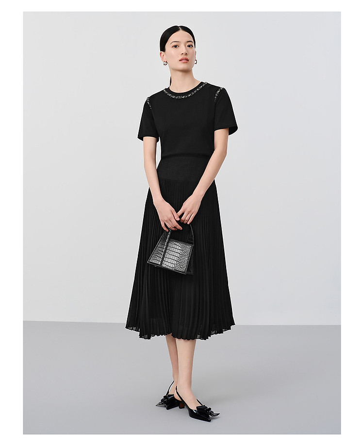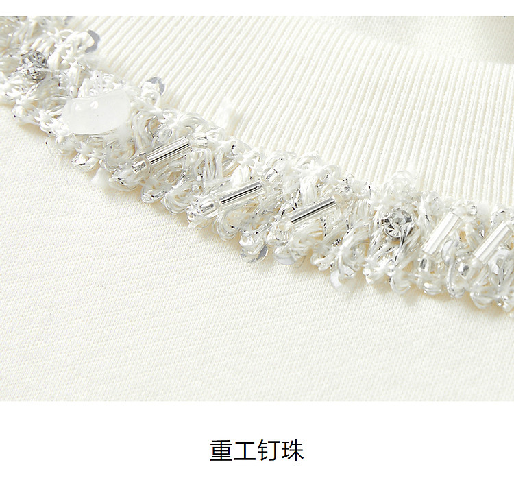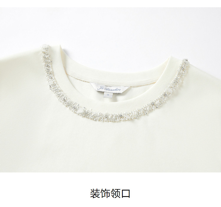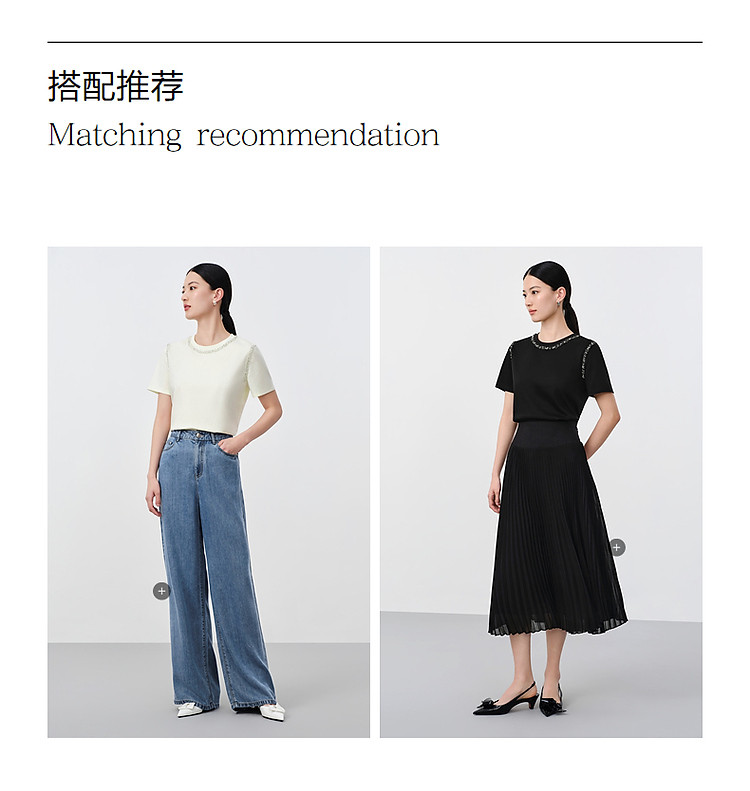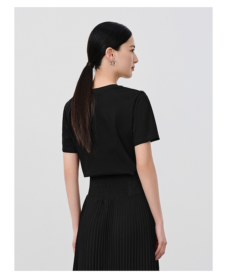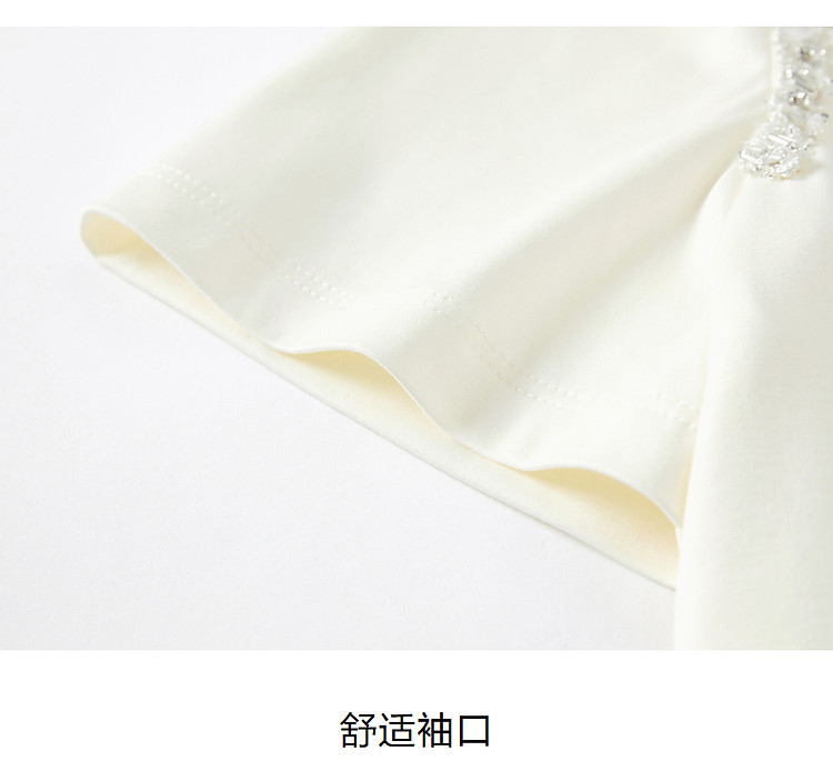 商品名称:玖姿旗下安娜蔻系列优雅淑女钉珠纯棉圆领薄T恤女夏季 420172