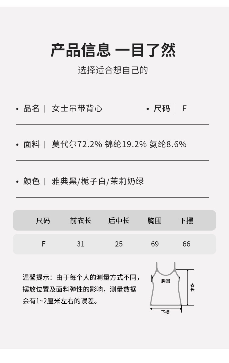 商品名称:【修身显瘦】基础内搭可外穿莫代尔吊带女夏季薄款打底背心内衣 563019